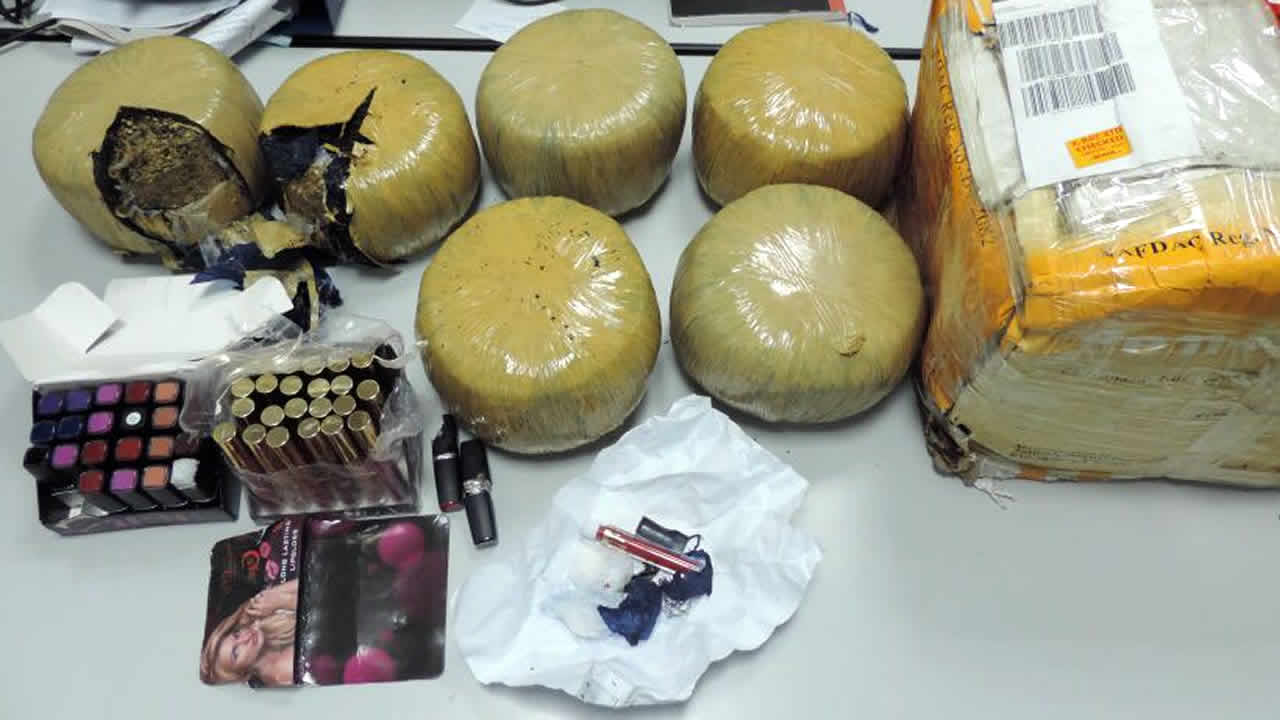 C’est samedi dernier que les éléments de la Customs Anti-Narcotics Section (CANS) ont mis la main sur le colis contenant 13,20 kilos d’une matière compressée, des graines soupçonnées d’être du cannabis et 162 grammes de méthamphétamine. La valeur marchande des drogues dissimulées dans des boîtes contenant des tubes de rouges à lèvres est estimée à Rs 10 350 000.