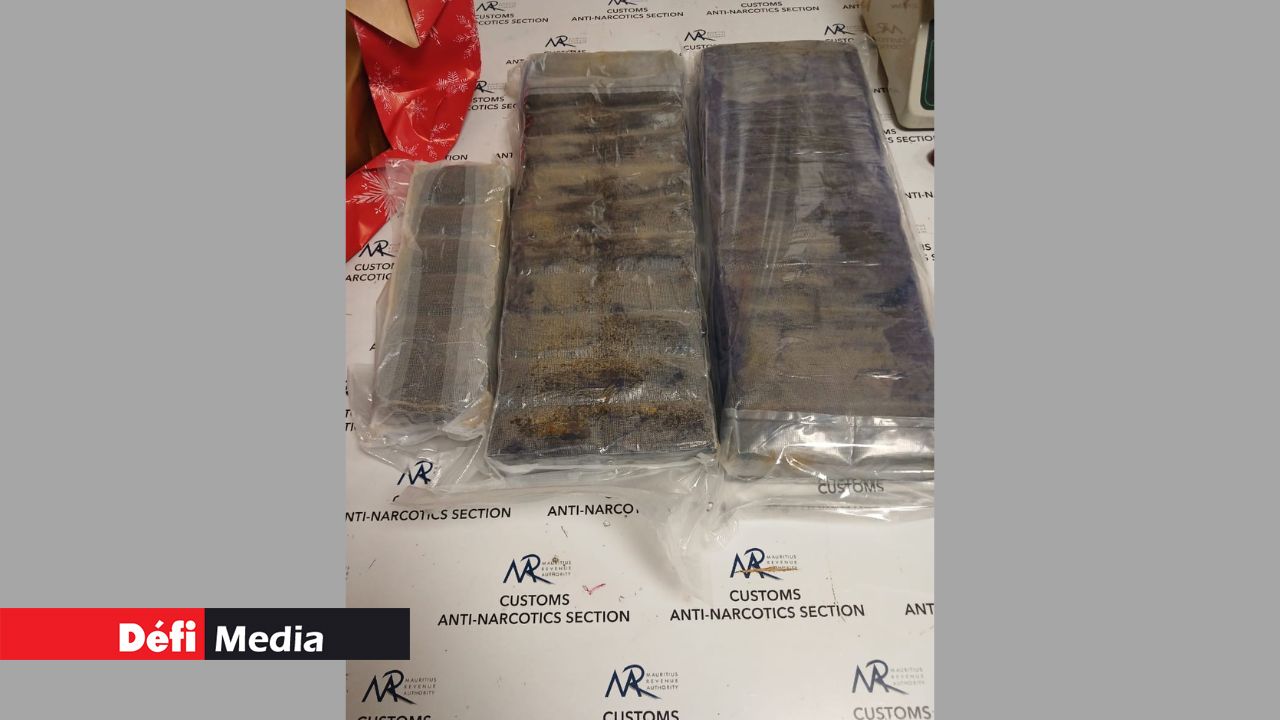 Lors d’un contrôle de bagages, les agents de la Customs Anti-Narcotics Section (CANS) de la Mauritius Revenue Authority (MRA), en collaboration avec la Brigade antidrogue (Adsu) de l’aéroport, ont découvert 20,6 kilos de haschisch.