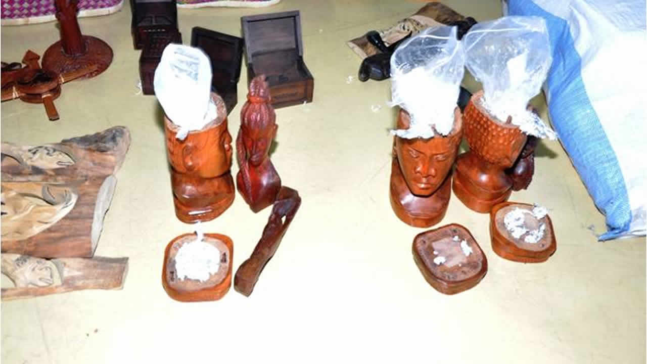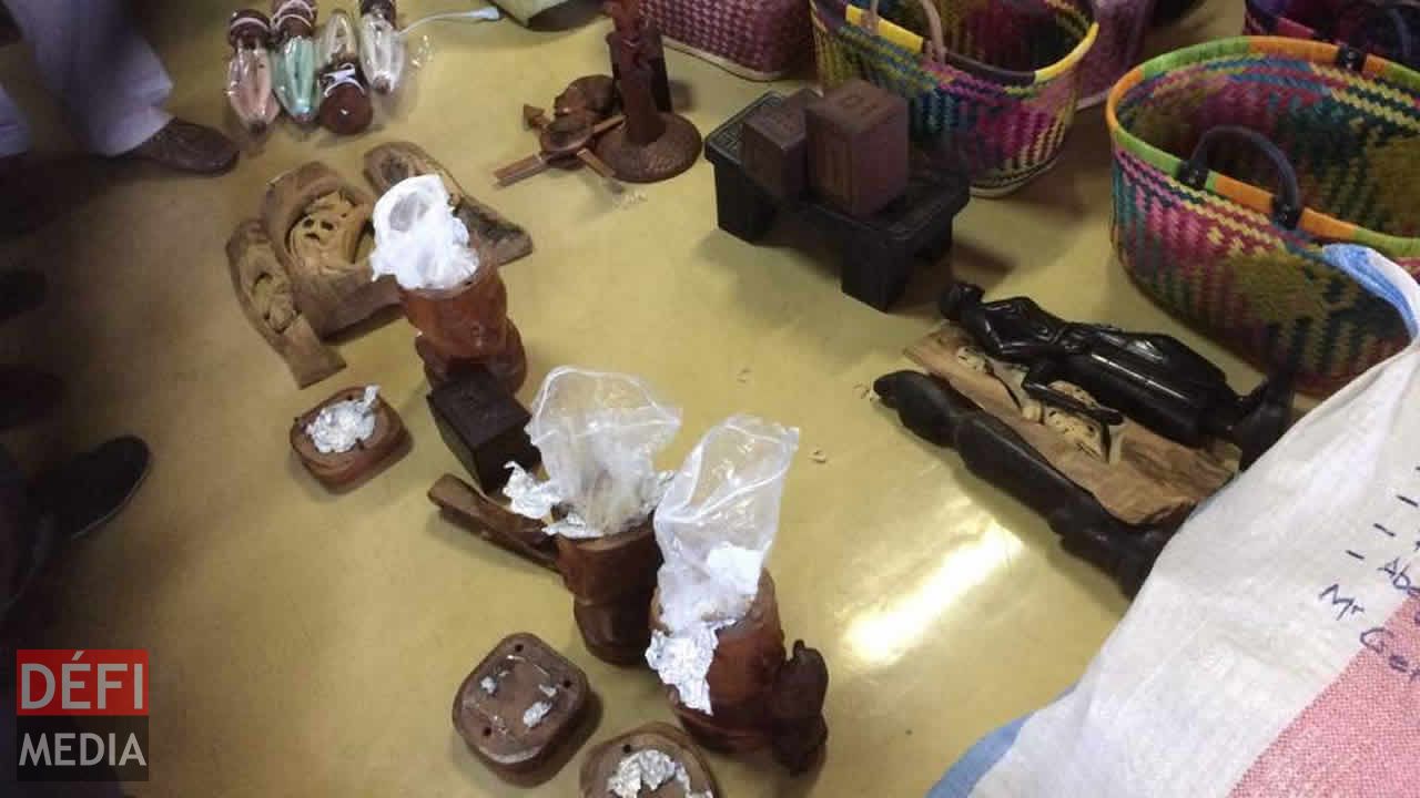 La drogue était dissimulée dans des statuettes et des tables en bois en provenance de Madagascar. Elle était destinée à une Malgache habitant Notre-Dame.