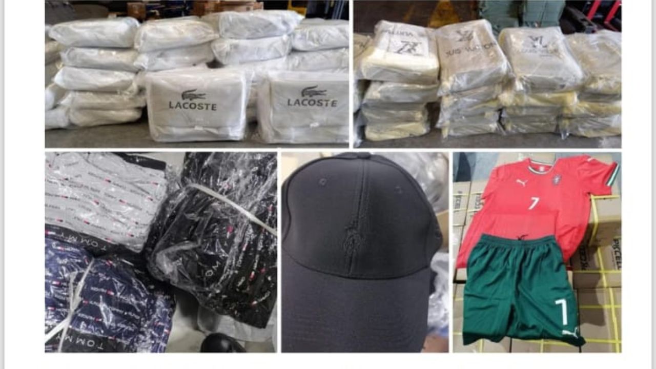 Parmi les marques de luxe concernées, Lacoste est la plus représentée avec 922 articles contrefaits, incluant des sacs à main, casquettes, sous-vêtements et portefeuilles.