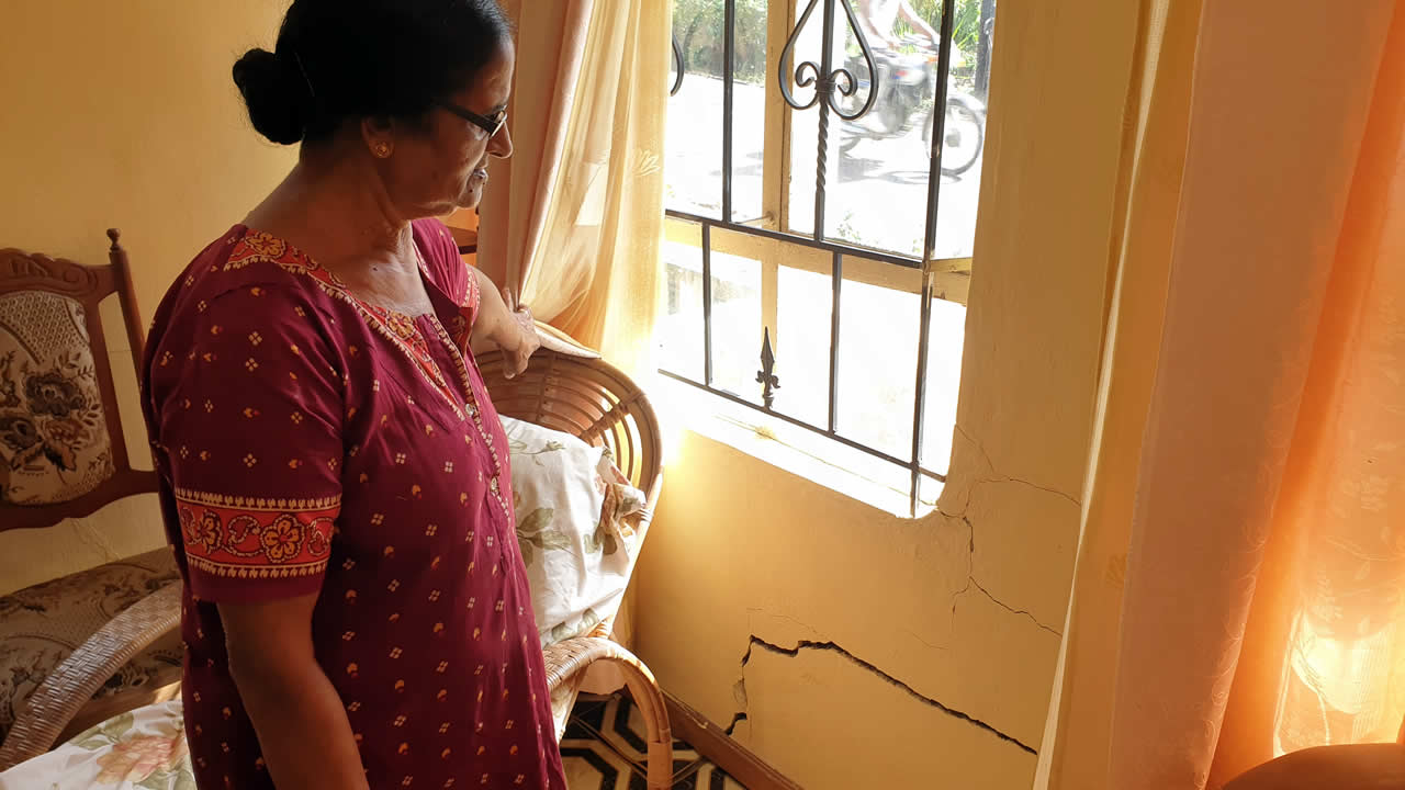 Cap sur Chitrakoot, à Vallée-des-Prêtres, l’une des régions les plus affectées en cas de forte pluviosité. Hormis l’eau qui envahit les maisons, les problèmes de glissement de terrain sont le pire cauchemar des habitants. Nous rencontrons Dhunwantee Hookoom qui habite la route principale menant vers l’ancienne école. Avec désolation, elle nous montre l’état de sa maison. « à cause des grosses averses, ma maison a commencé à se fissurer de partout. Les rats en profitent pour entrer. J’ai beau boucher ces fêlures mais l’eau s’infiltre dès qu’il pleut abondamment. Je crains que ma maison ne cède sous la pression des averses. »