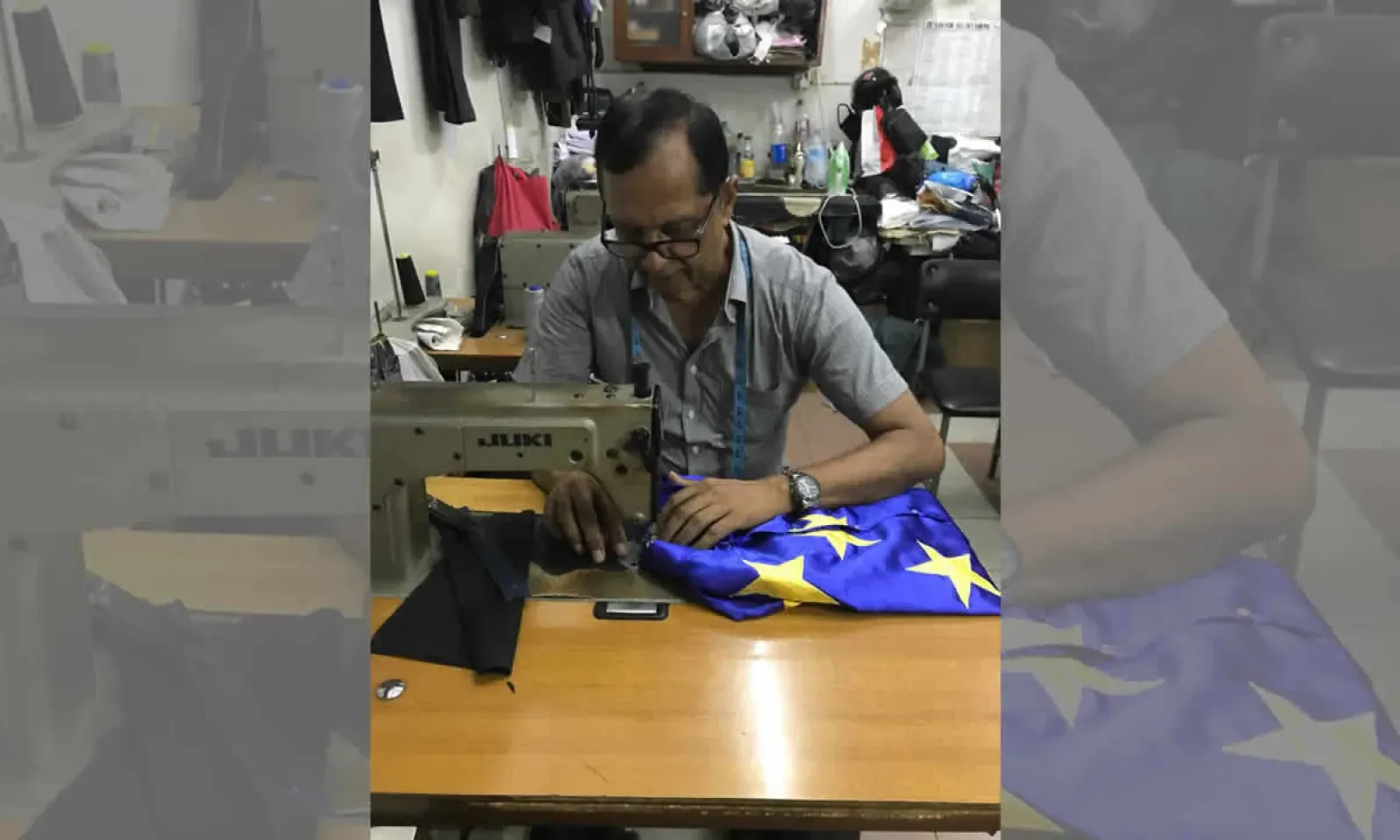 Des bouts de tissus sont éparpillés. Dans cet atelier de couture connu pour son travail « soigné », de nombreuses personnes font le va-et-vient entre les morceaux de tissus, alors que la musique coule à flots et masque quelque peu le crissement des ciseaux.