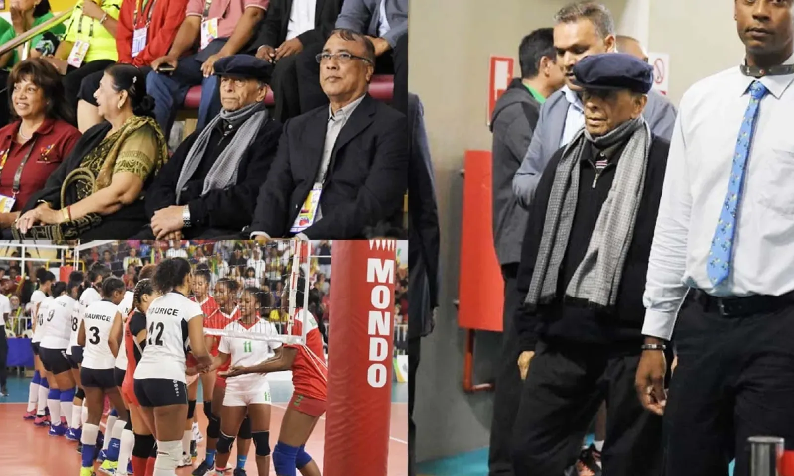 Grand amoureux du ballon rond, sir Anerood Jugnauth apprécie aussi les matchs de volley-ball. Coiffé d'un béret et portant une écharpe autour du cou, le ministre Mentor a bravé le froid de Vacoas pour se rendre au gymnase Pandit Sahadeo pour assister à la rencontre Maurice-Madagascar (dame). Il était accompagné de son épouse, Lady Sarojini.