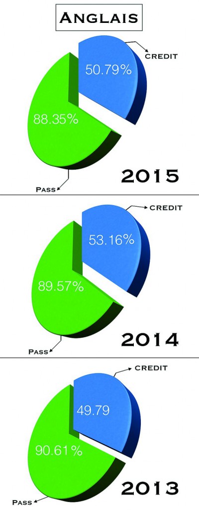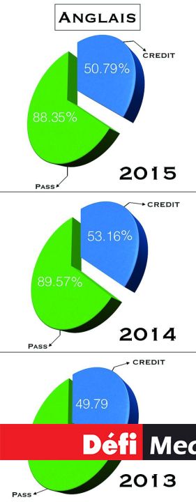 According to the distribution of ‘grades’ per subject published on the website of the Mauritius Examinations Syndicate (MES), the success rate in English is of 88.35% this year against 89.57% in 2014 and 90.61% in 2013. The percentage of students who have obtained a ‘Credit 1-6’ is of 50.79% this year, against 53.16% in 2014. This decline in success rates is also visible in French. Last year, 83.37% of candidates passed and 51.26% obtained a Credit. In 2014, the success rate was 84.83% in French and the percentage of candidates with a Credit was of 54.86%.