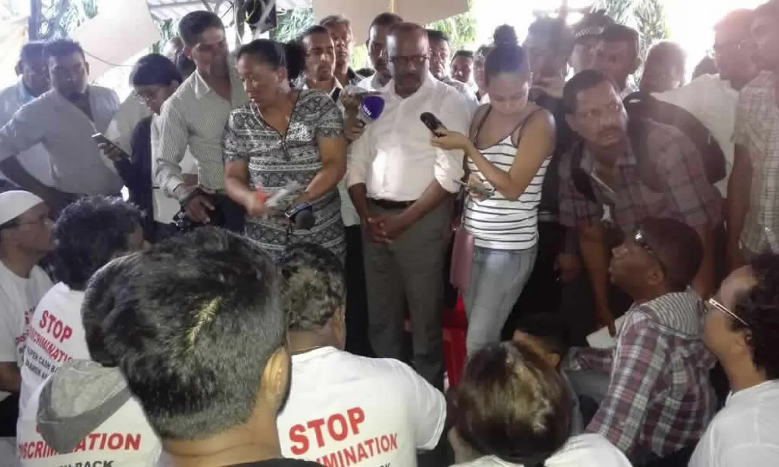 Le ministre des Services financiers et la Bonne gouvernance, Sudhir Sesungkurm s’est rendu vers jeudi après-midi 11 mai au jardin de la Compagnie, Port-Louis, pour rencontrer les anciens clients du Super Cash Back Gold et de Bramer Asset Management en grève de la faim depuis le lundi 8 mai.