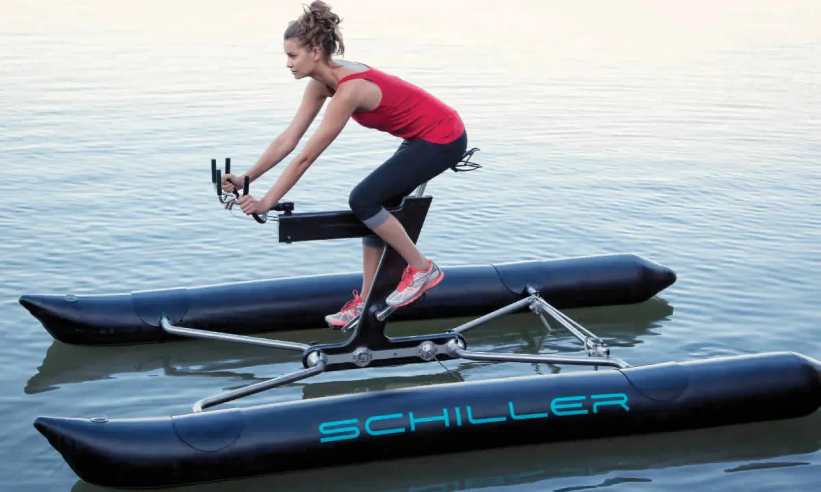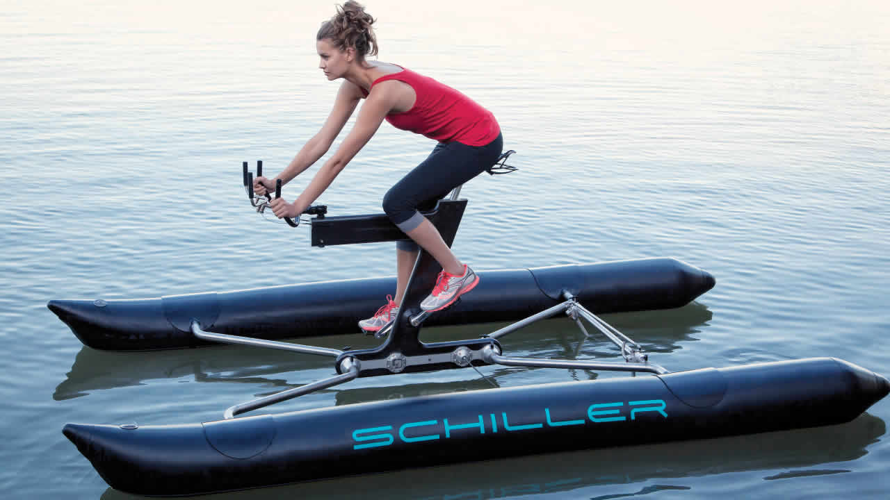 Les amateurs de cyclisme et de nautisme n’auront plus à nager entre deux eaux. Il sera bientôt possible d’allier ces deux passions grâce à la Schiller Bike. Ce vélo flottant est doté d’un cadre, d’un pédalier, d’un guidon, d’une selle et de deux gros flotteurs en guise de roues. De quoi se jeter à l’eau !