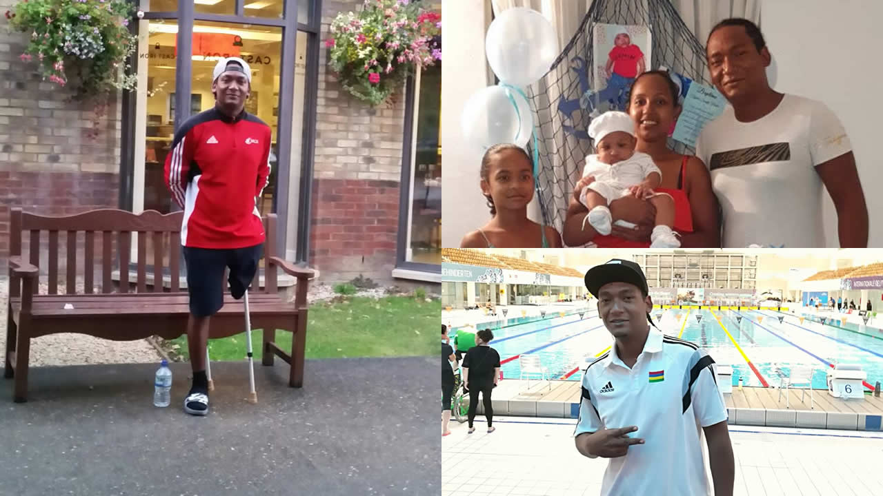 Son amour pour le sport est né d’une compétition qu’il a vue à la télé. C’était en 2003 aux Jeux des îles de l’océan Indien (JIOI). « J’ai été fasciné par un nageur et, comme j’aimais aller à la plage, j’ai dit à mon père que je voulais devenir nageur. Il était un peu sceptique. Je venais de subir mon opération et il avait un peu peur pour moi ».