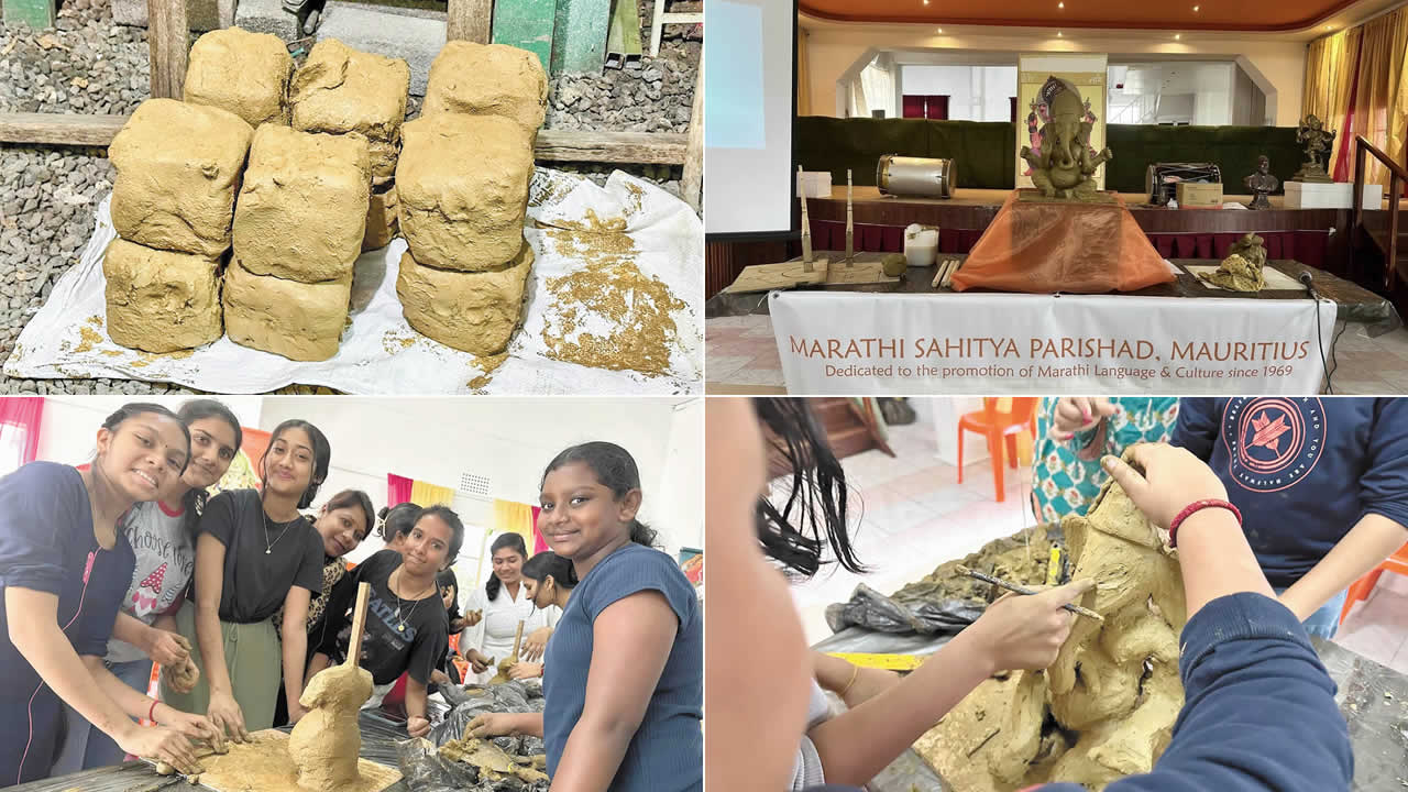 À l’occasion de la fête Ganesh Chaturthi à Maurice, la Marathi Sahitya Parishad a organisé un atelier d’initiation de deux jours à la confection des statuettes du dieu Ganesh, indique Bhalchandra Govind. Cet atelier, dont l’organisation a nécessité près d’un mois de préparation, a été animé par Krishen Row Appa, un sculpteur renommé de la région de La Vanille, à Vacoas, qui possède plus de 40 ans d’expérience dans la fabrication des statuettes en argile du dieu à tête d’éléphant. « Afin de préserver ce précieux héritage et de former la nouvelle génération de sculpteurs traditionnels de l’île, l’atelier a permis à 48 jeunes sculpteurs venant de différentes régions du pays d’apprendre les techniques et les secrets de cet art ancestral », dit-il.