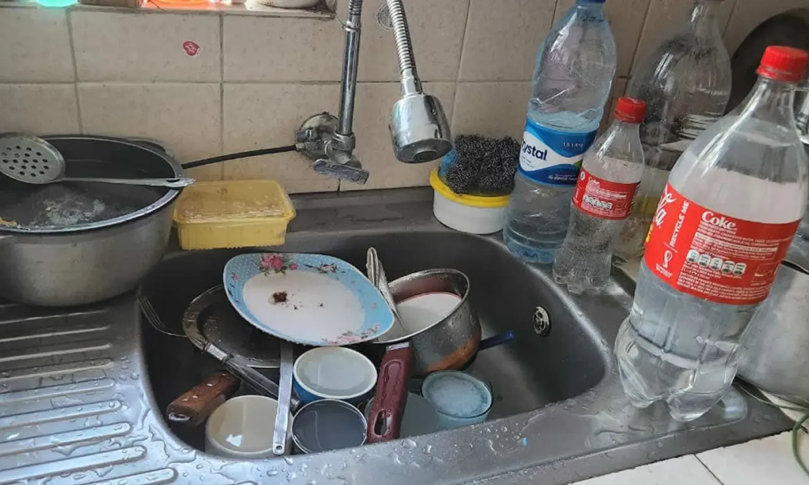 Si elle dispose d’un réservoir d’eau, elle a du mal à le remplir en raison du manque de pression. La famille a dû prendre des bouteilles et seaux pour le remplir à partir d’un robinet au rez-de-chaussée. Afsa M. raconte qu’elle a dû prendre de l’eau embouteillée pour laver un enfant souffrant de la diarrhée il y a quelques jours et avance qu’elle a aussi du mal à faire sa lessive et vaisselle.
