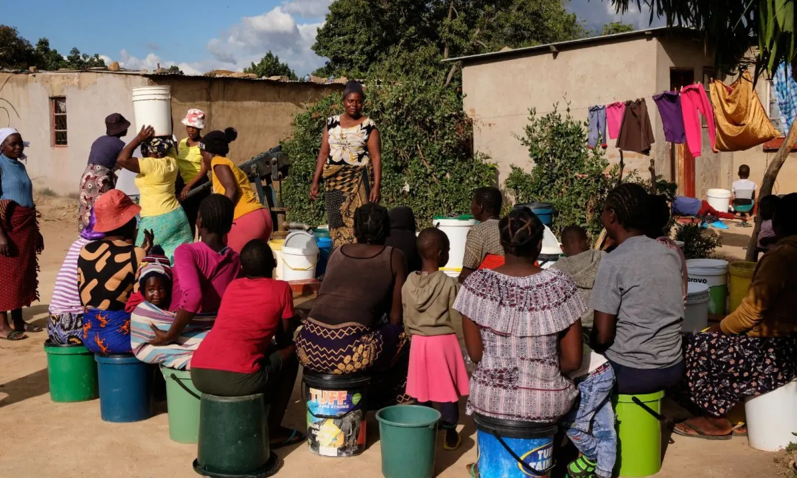Macaroni et ragoût de soja sont bientôt prêts et déjà de jeunes enfants, des adolescents et quelques personnes âgées se hâtent de faire la queue: dans ce coin rural près de Harare, la capitale du Zimbabwe, la sécheresse liée au phénomène El Niño creuse les ventres.