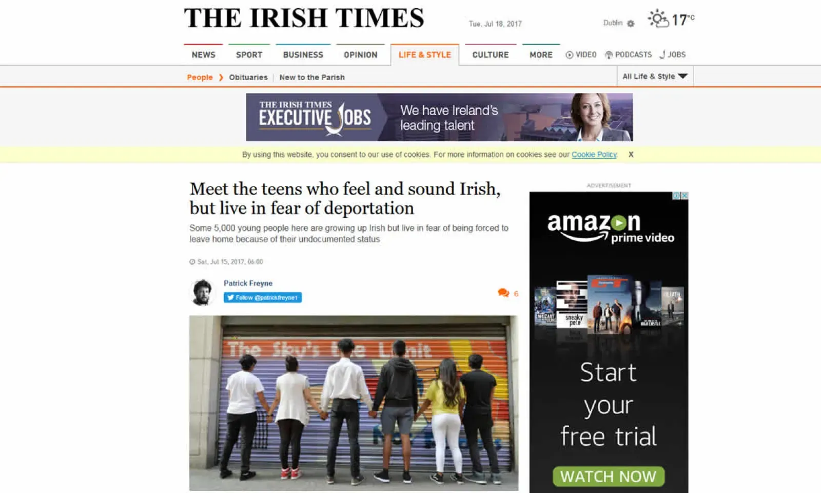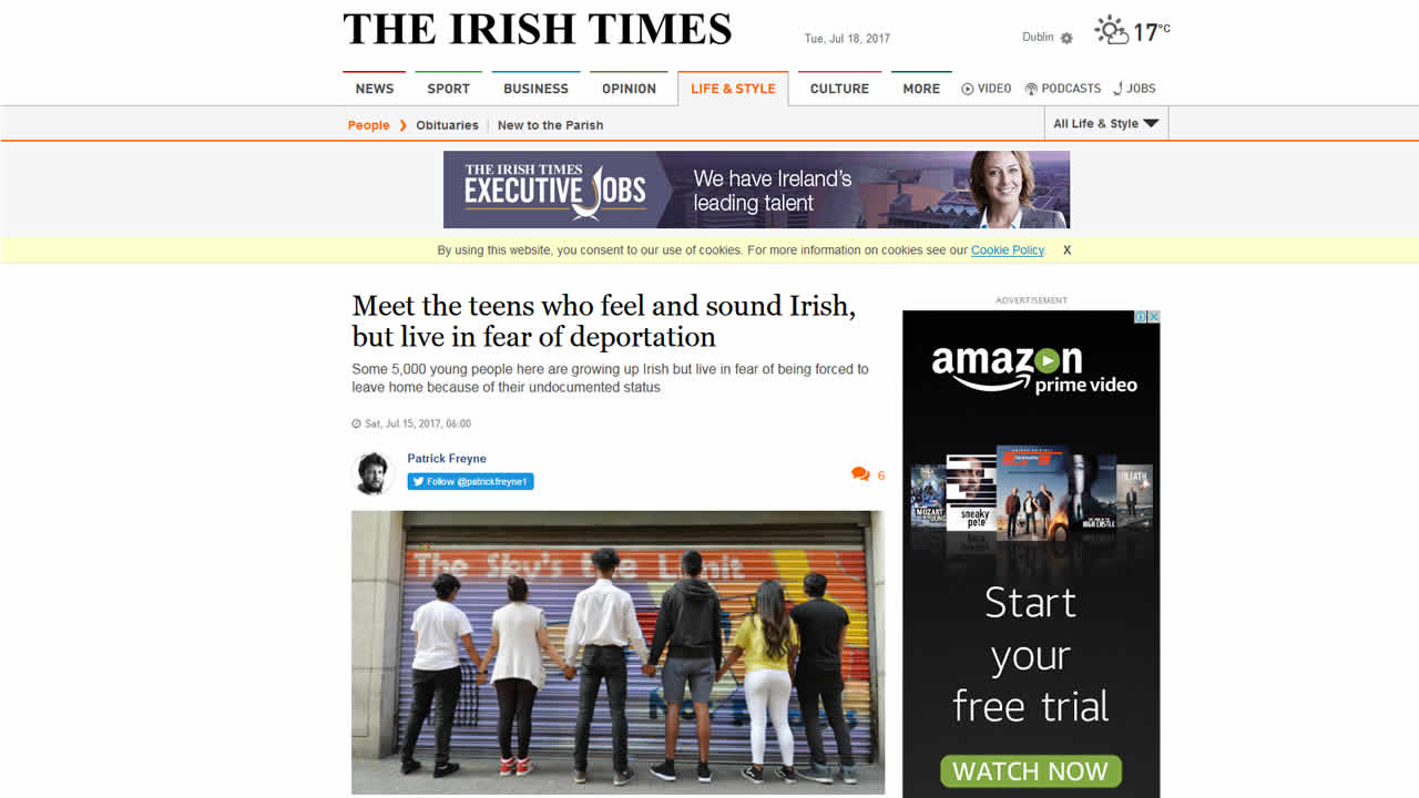 The Irish Times ajoute que certains de ces jeunes ont été acceptés par des universités mais ne peuvent poursuivre leurs études, faute de moyens financiers. Et ils ne veulent pas non plus quitter le sol irlandais de peur de ne jamais pouvoir y retourner. Ces jeunes, enfin, sont souvent obligés de faire des petits boulots et d’être sous-payés, comme leurs parents.