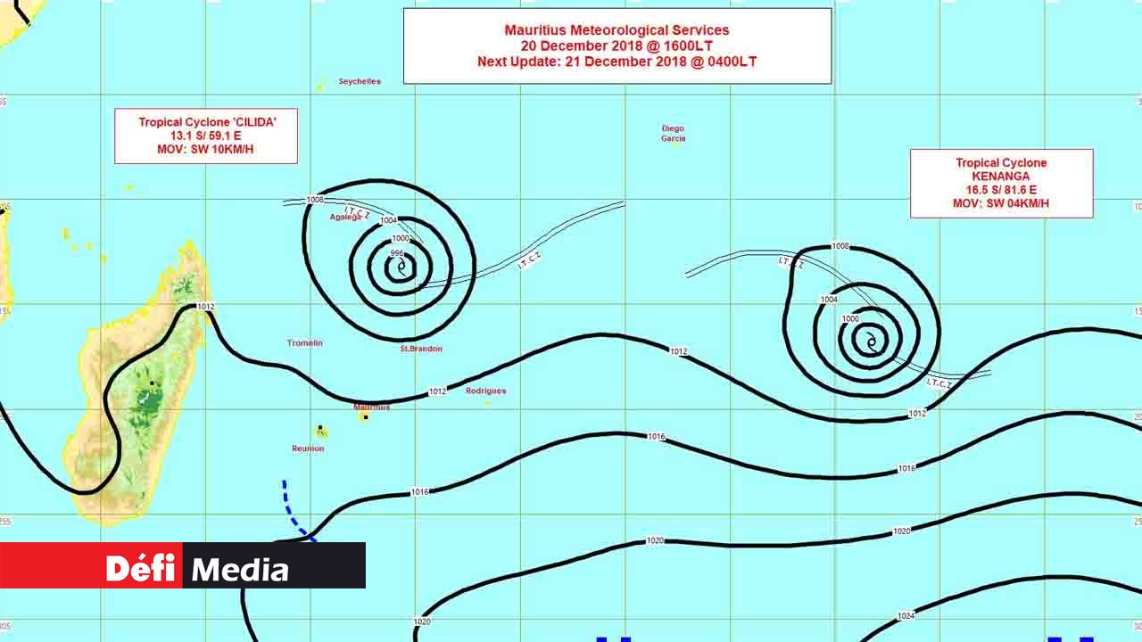 Cilida traversera entre Maurice et Rodrigues vers midi le dimanche 23 décembre. Selon la station météo de Vacoas, Cilida passera à son point le plus rapproché de Maurice à environ 200 km au nord-est.