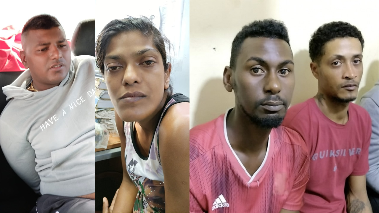 Par la suite, les enquêteurs menés par les inspecteurs Moosun et Rujub procèdent à l’arrestation du cerveau présumé, Selven Valliamah, de Sooriadevi Poullay, domiciliée à Quartier-Militaire et de deux habitants de Cité-Villemin, Steven Laval Roussetan et Louis Andy Steven Augustin. Ces quatre suspects sont identifiés positivement par la victime. Lors de leurs interrogatoires respectifs, ils passent aux aveux. Le lendemain, ils sont présentés devant le tribunal de Flacq et sont inculpés d’extorsion. Ils demeurent en détention policière.