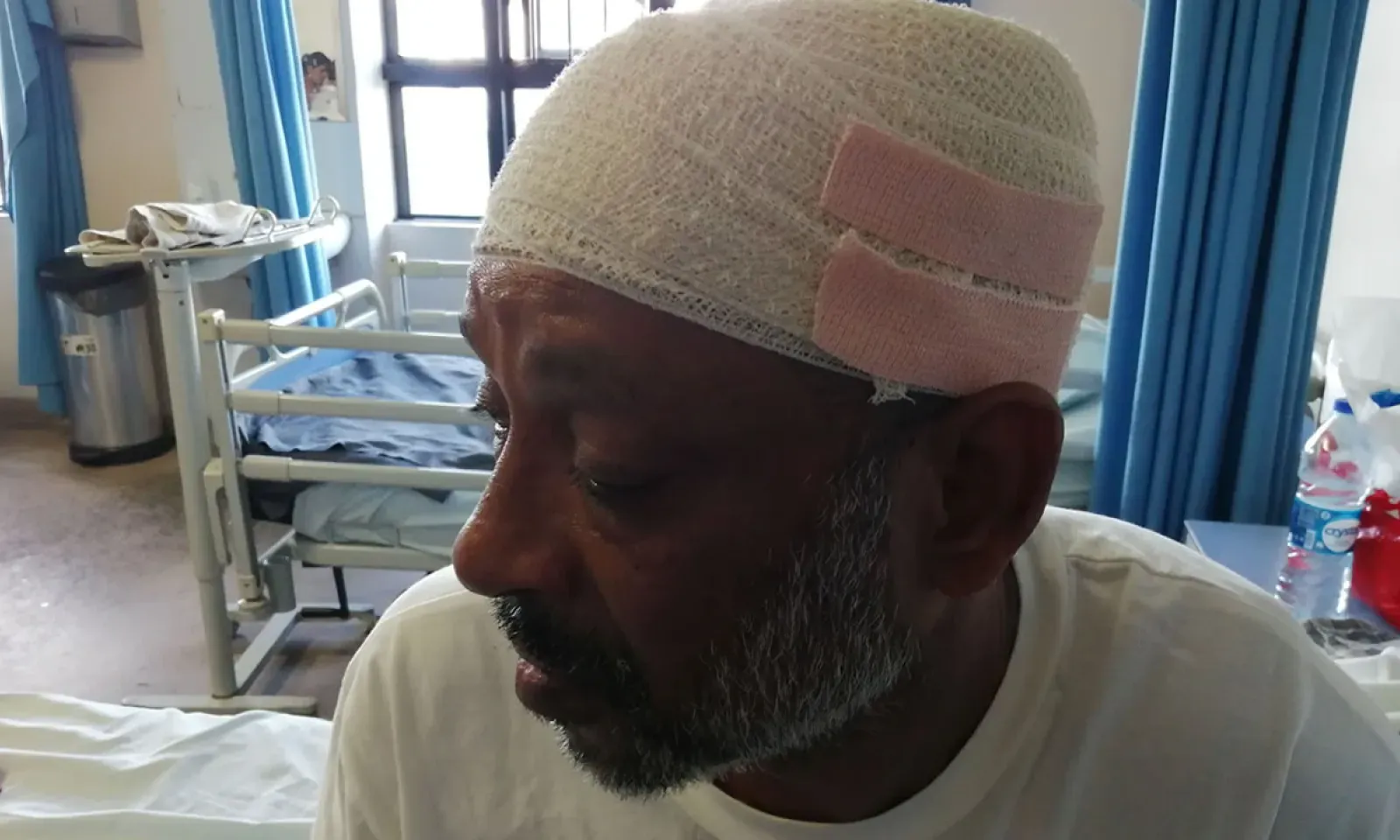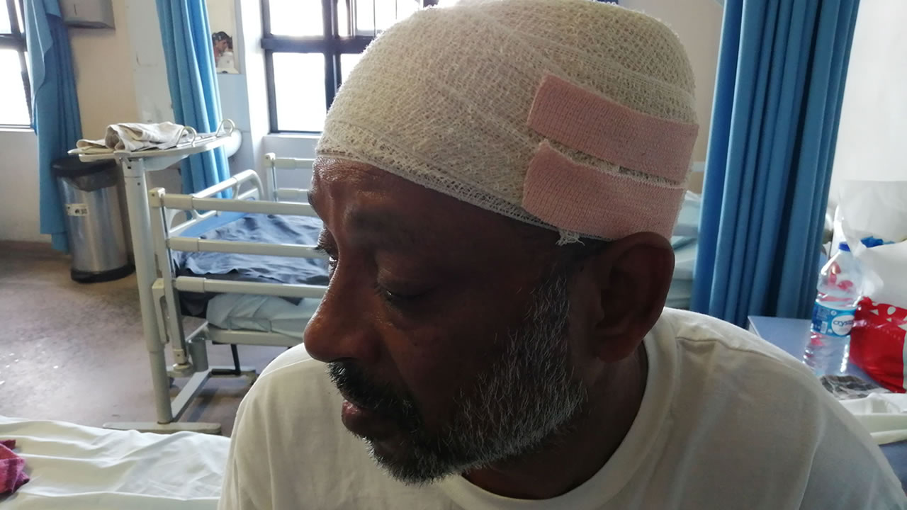 Marcelino est tombé et a commencé à saigner. Au même moment, deux amis de la victime sont arrivés. Ils ont pénétré dans la maison et se sont interposés. « De kamarad la inn resi trap mo garson. Zot inn amen mwa ek mo garson stasion. Depi laba lapolis inn amen mwa lopital », explique Marcelino.