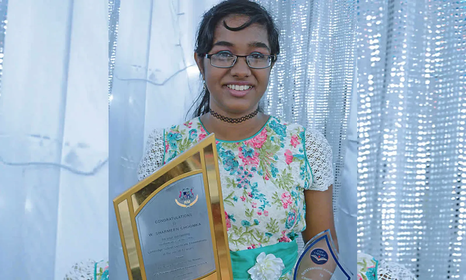 Comme prévu par ses parents et ses sœurs, Sharmeen réussit son coup aux examens du SC en 2016. Elle décroche 10 unités (un A, cinq B et deux C), soit A en Mathématiques, B en Anglais, Français, Islamic studies, Accounts et Add Maths et C en Littérature anglaise et Computer studies. « Je ne m’attendais pas à de si bons résultats. Je suis très contente. J’ai réussi le défi et rendu ma famille fière », avance-t-elle.