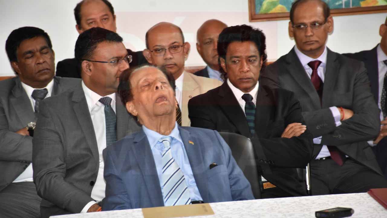 Le ministre mentor, sir Anerood Jugnauth (SAJ), tout comme le ministre des Arts et de la culture, Pradeep Roopun, et le ministre Ashit Gungah, ont été aperçus en train de piquer un petit roupillon en pleine conférence de presse, qui s'est tenue ce vendredi après-midi au Bâtiment du Trésor, à Port-Louis. Sur d'autres photos, on peut aussi voir les ministres Nando Bodha et Anil Gayan qui avaient les yeux fermés...