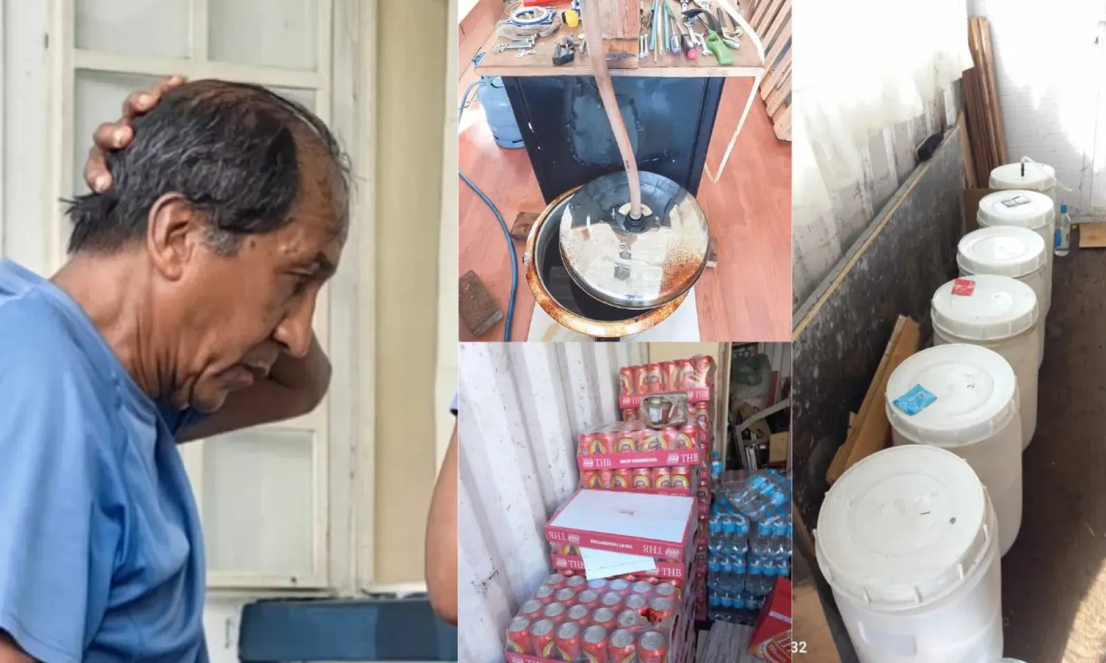 Des packs de bière importés ont également été découverts par la police. Le suspect a expliqué qu’il les avait importés. Le suspect ne détiendrait pas de permis pour la fabrication et la commercialisation de produits alcoolisés.