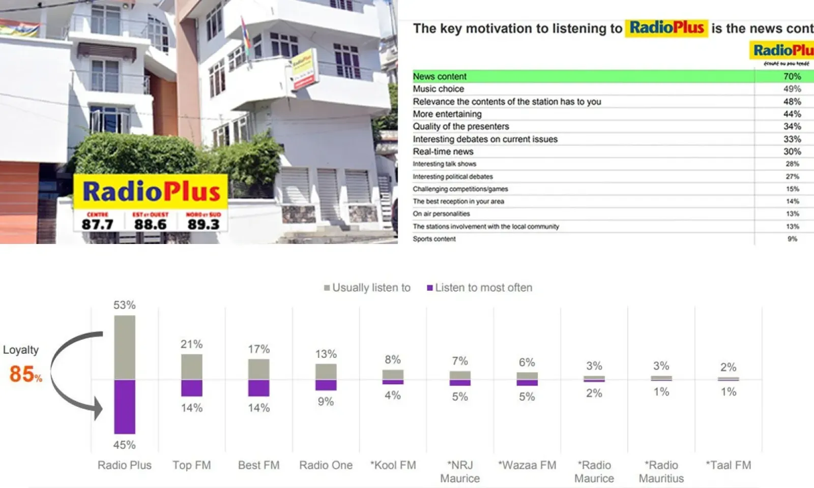 « 70 % de ceux qui préfèrent Radio Plus disent nous apprécier en raison de l’information. Ce créneau contribue ainsi largement à consolider notre position de leader dans le paysage audiovisuel. C’est une marque de confiance de nos auditeurs. Je dois dire qu’au fil des années nous avons fait beaucoup d’efforts et fait montre d'un sens de la rigueur et du professionnalisme dans notre façon de traiter l’information de manière équilibrée, sans tomber dans l’hystérie mais sans faire de concessions non plus. Nous faisons notre travail avec honnêteté et sans parti pris et le sondage vient démontrer que les Mauriciens reconnaissent cela », affirme Nawaz Noorbux, directeur de l'information de Radio Plus.