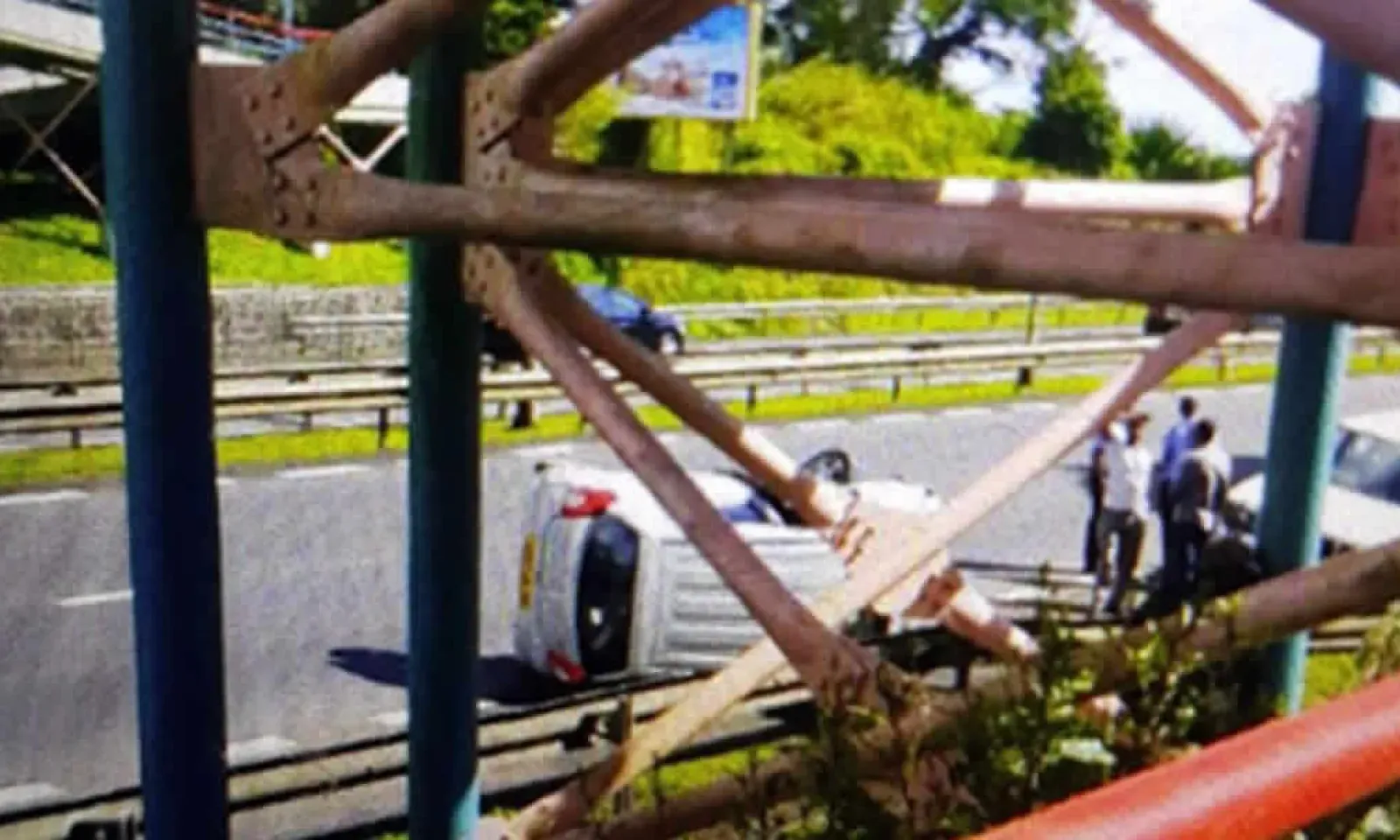 Accident de la route à la hauteur de Sorèze, Pailles, ce mardi 4 juillet. Une voiture s’est renversée sur son flanc droit sur l’autoroute.