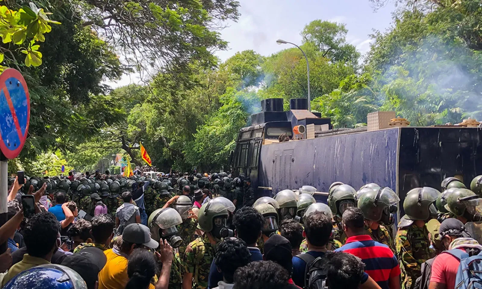 La foule a débordé les forces de l'ordre et est entrée dans le bâtiment, brandissant des drapeaux du pays, alors que la police et l'armée avaient tenté de les repousser avec des gaz lacrymogènes et des canons à eau.