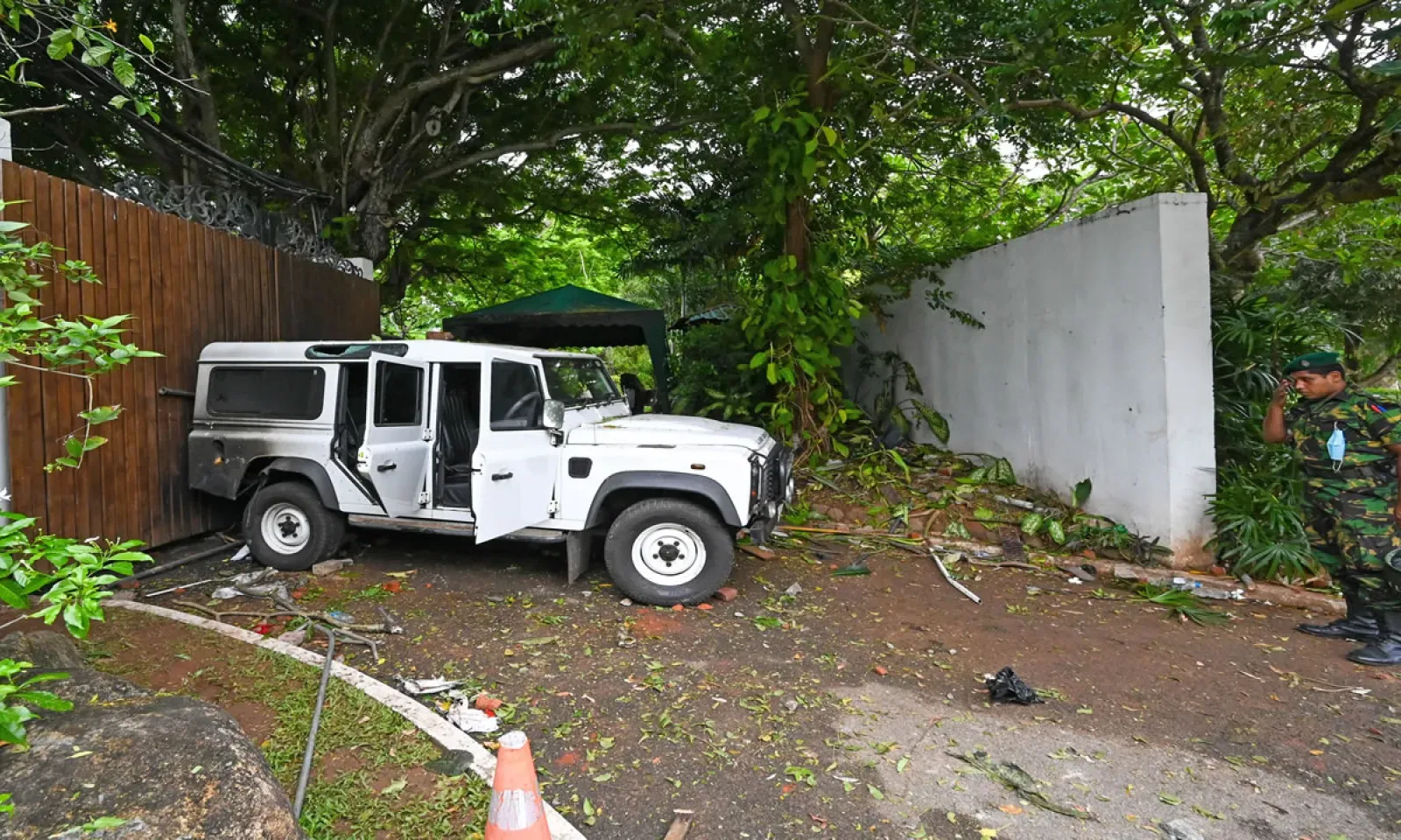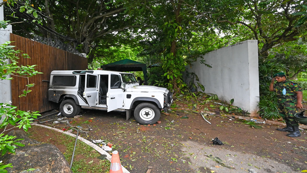 Après avoir forcé le principal portail de la résidence "Temple Trees" de Mahinda Rajapaksa à Colombo, les manifestants ont tenté de prendre d'assaut la bâtisse principale de deux étages où le frère du Président Gotabaya Rajapaksa s'était retranché avec sa famille.