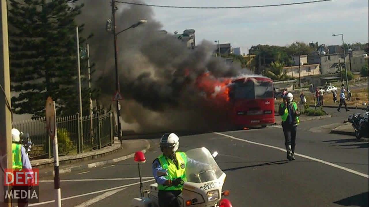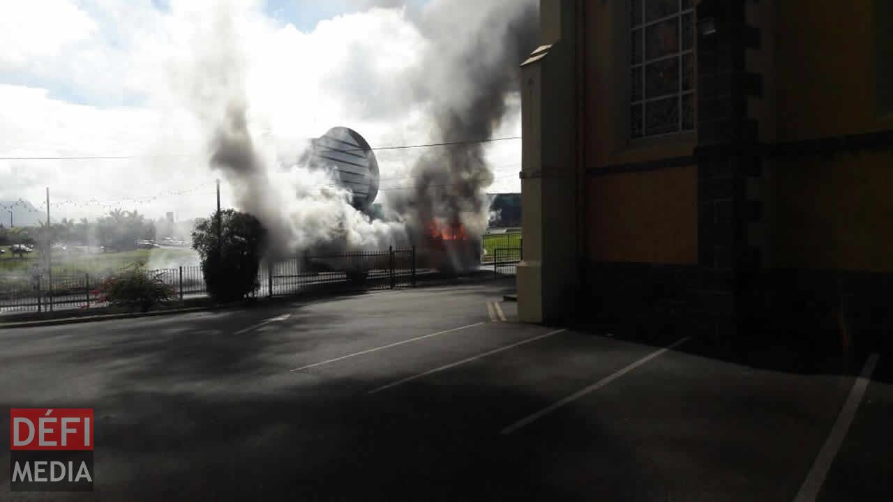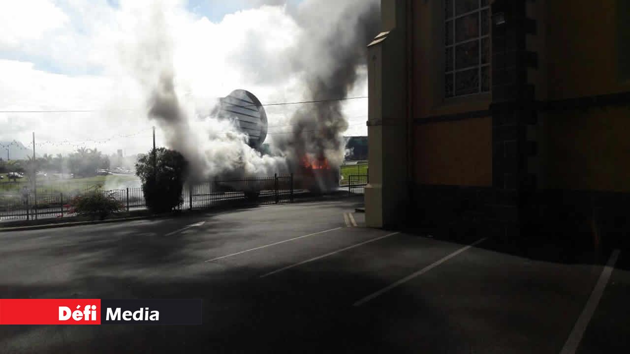 Cela s’est produit vers 9 h ce jeudi 25 août : un bus a pris feu près de l’église St-Jean, à Quatre-Bornes.