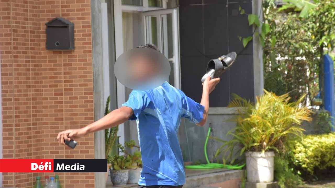 La scène se déroule à Circonstance, à St-Pierre cet après-midi, dimanche 26 avril. Ce jeune homme a été surpris en train de lancer sa sandale sur le propriétaire d'un van... après avoir tenté de briser le parebrise du véhicule. Il a pris la fuite à l'arrivée des policiers.