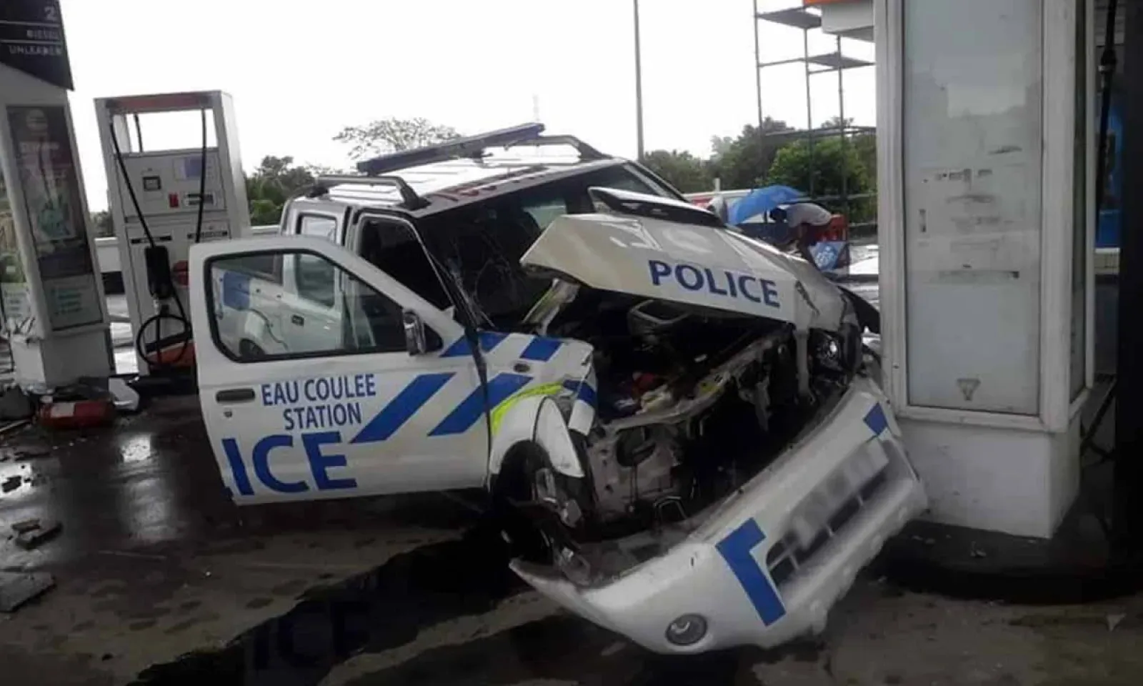 La station-service sur l’autoroute de Wooton a été le théâtre d'un accident de la route, ce mardi matin, 26 novembre. Un véhicule 4x4 de la police d’Eau-Coulée a dérapé avant de finir sa course contre une des pompes de la station d’essence.