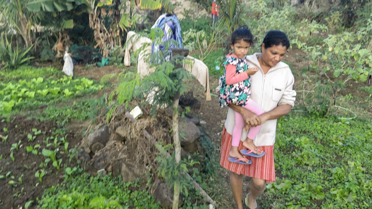 Cela fait 10 ans que Malini a suivi son époux dans cette aventure. Si elle a toujours eu la main verte – d’ailleurs, les belles plantes devant chez elle le prouvent - elle n’avait jamais pensé à se consacrer à l’agriculture. Elle a arrêté de travailler pour s’occuper de son enfant qui avait des problèmes de santé, puis elle a aussi commencé à se sentir mal. Son époux, maçon de profession, trouvait toujours un moment pour planter quelques légumes. « Cela nous aidait beaucoup. Même aujourd’hui, nous consommons principalement les légumes de notre jardin. Par exemple, en ce moment, je mange toutes les semaines des bringelles, des brèdes ainsi que les laitues », explique Malini.