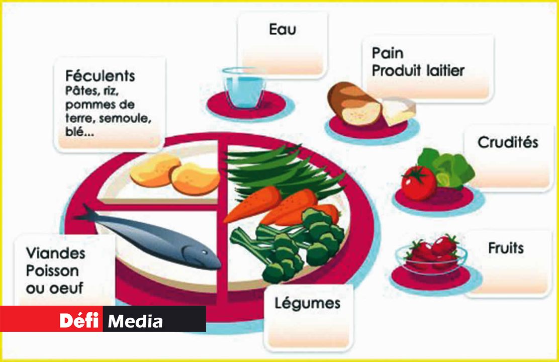 [[{"type":"media","view_mode":"media_large","fid":"15677","attributes":{"class":"media-image aligncenter size-full wp-image-26371","typeof":"foaf:Image","style":"","width":"1280","height":"829","alt":"Un plat \u00e9quilibr\u00e9"}}]] Un plat équilibré, permettant de perdre du poids, devrait être ainsi : un quart d’hydrates de carbone (riz, pâtes, pain, pomme de terre), un quart des produits protéinés (poulet, poisson, lentilles, œufs) et l’autre moitié composée de légumes et de fruits. « Si une personne veut maigrir, je lui conseillerais de diminuer d’un quart sa portion de d’hydrates de carbone et de les remplacer par des fruits et des légumes. Ils contiennent beaucoup de fibres, qui donnent une sensation de satiété. Il faut aussi éviter de manger trop vite afin de donner du temps au cerveau de nous envoyer le signal que nous n’avons plus faim. La plupart du temps, les gens qui sont en surpoids ont l’habitude de manger rapidement devant la télévision ou devant leur ordinateur. Ce qui n’est nullement recommandé », précise la nutritionniste Divya Poorun.Pas de potion magique