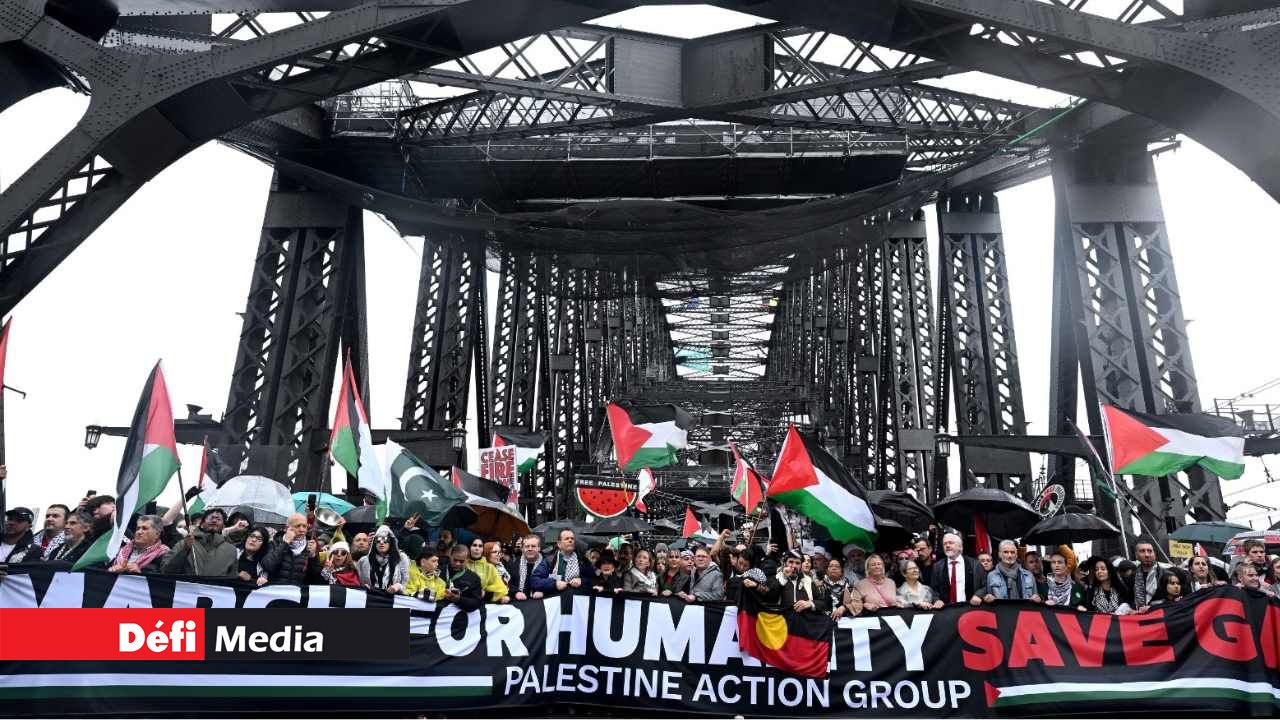 Des dizaines de milliers de personnes ont participé, ce dimanche, à une marche pro-palestinienne baptisée March for Humanity à Sydney, malgré une pluie battante. Le rassemblement a pu se tenir sur le Sydney Harbour Bridge après avoir été autorisé, la veille, par la Cour suprême, une décision qualifiée d’« historique » par les organisateurs.