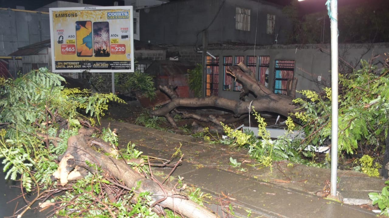 La forte tempête tropicale Calvinia tient tout le pays en otage. Elle ne bouge plus depuis 9 h le lundi 30 décembre. A 22 h, elle était située à 70 km de Mahébourg. Les rafales continuent à provoquer des chutes arbres.