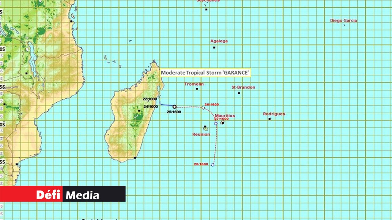 La station météorologique de Vacoas a révisé, ce mardi après-midi, ses prévisions de trajectoire concernant la tempête tropicale modérée Garance. Selon les dernières estimations, le système devrait passer à proximité de la côte ouest de Maurice ce jeudi, et non directement sur l’île comme initialement prévu.