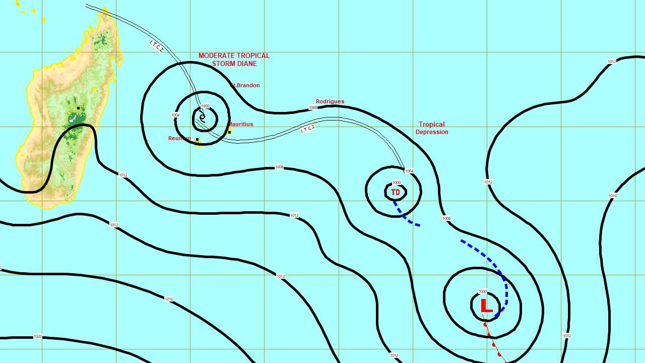 Sur cette trajectoire, Diane se rapproche de l’île constitue une menace potentielle pour Rodrigues.