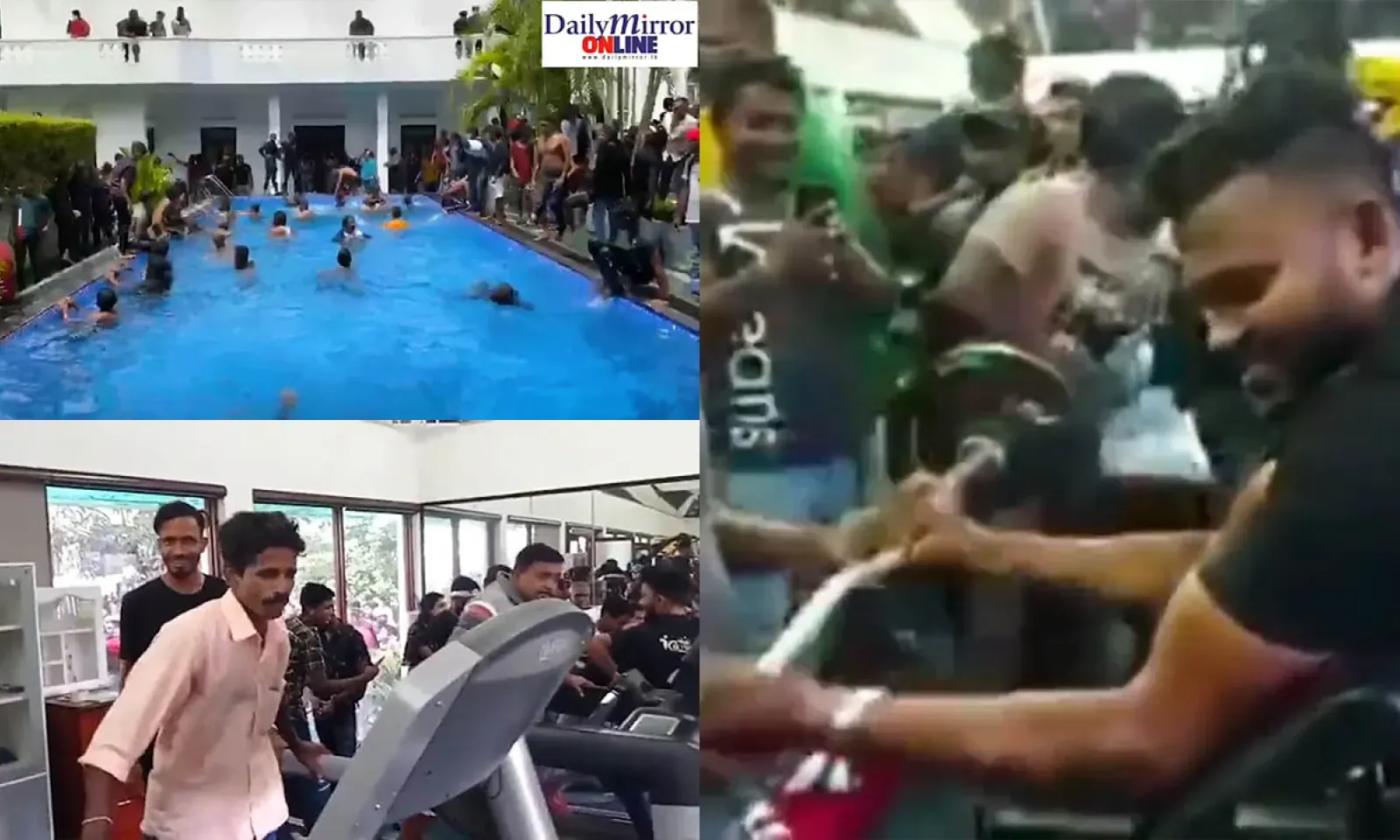 Alors que la crise économique au Sri Lanka s'aggrave, des milliers de manifestants ont pris d'assaut samedi le palais présidentiel à Colombo, profitant du luxe réservé au Président et à sa famille. Les manifestants ont été vus en train de faire trempette dans la piscine, et des séances de sport dans le gymnase présidentiel et de se gaver de nourriture dans la cuisine du Président.