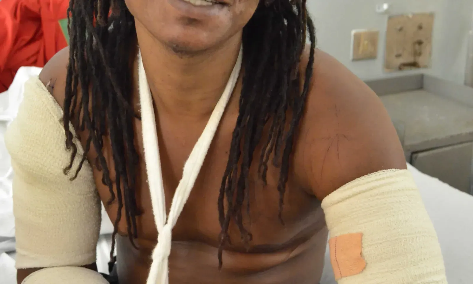 Giovanni S.L. admis à l’hôpital de Candos, une main et un pied menottés, explique qu’il est une victime. « J’ai reçu 38 projectiles dans une jambe, et 12 dans l’autre. Je n’ai rien fait, je suis une victime. J’étais simplement venu voir un ami. »