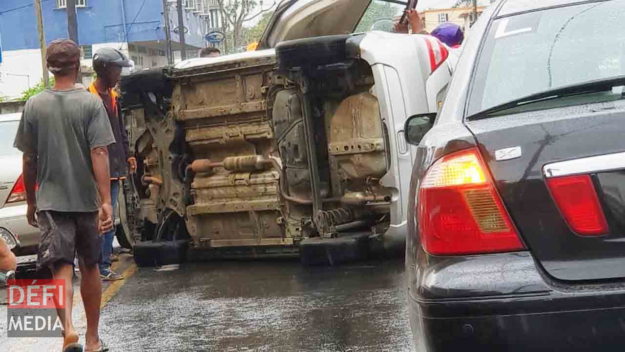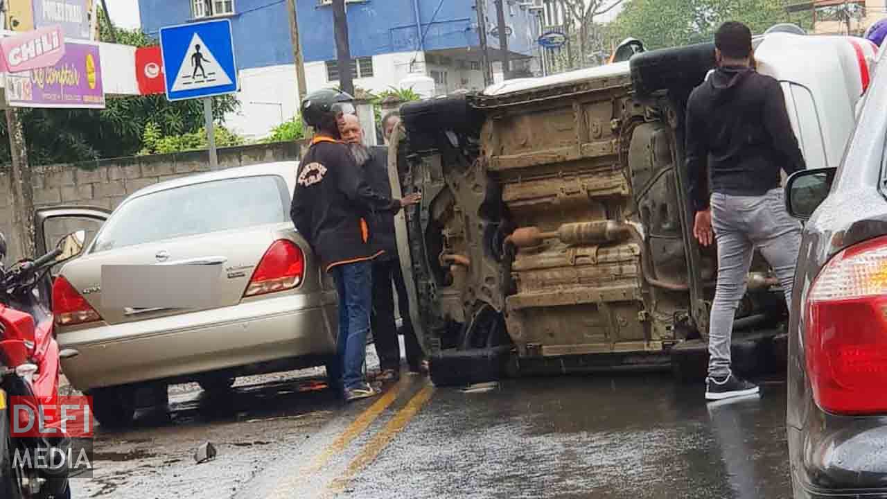 Accident sur la route royale à Terre-Rouge, dans l’après-midi de ce mardi 6 novembre. Une voiture s’est renversée au milieu de la route.