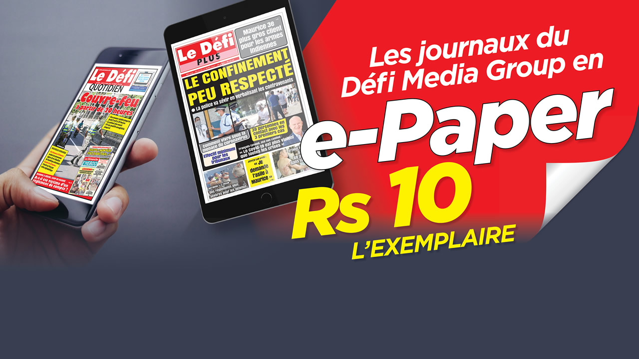 Le Défi Quotidien, dont l’édition papier se vend normalement à Rs 15, vous coûtera donc Rs 10 en version e-Paper. Vous paierez également Rs 10 pour votre exemplaire du Défi Plus qui, en version papier, se vend à Rs 20. Votre édition du Dimanche-L’Hebdo est elle aussi au prix de Rs 10.