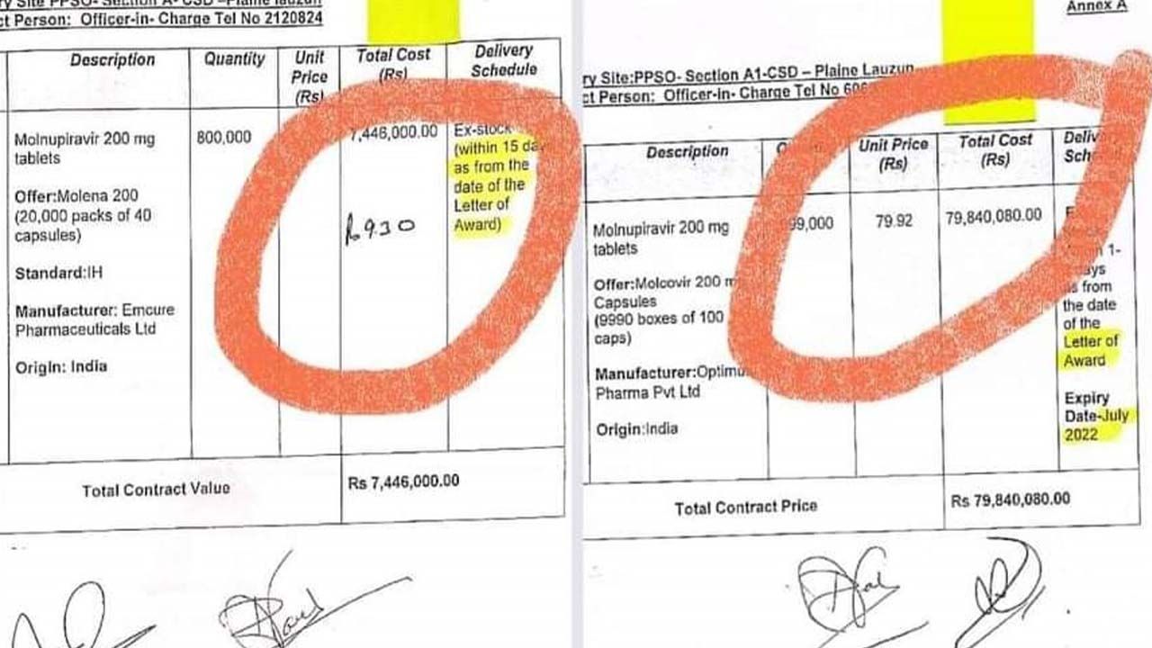 La pilule est dure à avaler. Le 6 décembre 2021, Mauritius Pharmacy a décroché un contrat du ministère de la Santé pour l’importation de 800 000 doses de Molnupiravir pour un montant de Rs 7 446 000, soit Rs 9,30 par comprimé. Le 7 décembre 2021, soit 24 heures plus tard, CPN Distributors a obtenu le contrat pour la livraison de 999 000 pilules de ce traitement anti-COVID-19 au coût de Rs 79 842 080, soit Rs 79,92 la pilule. Comment est-ce possible ? Xavier-Luc Duval a levé un coin du voile sur cet achat lors d’une Private Notice Question posée le vendredi 10 décembre 2021.