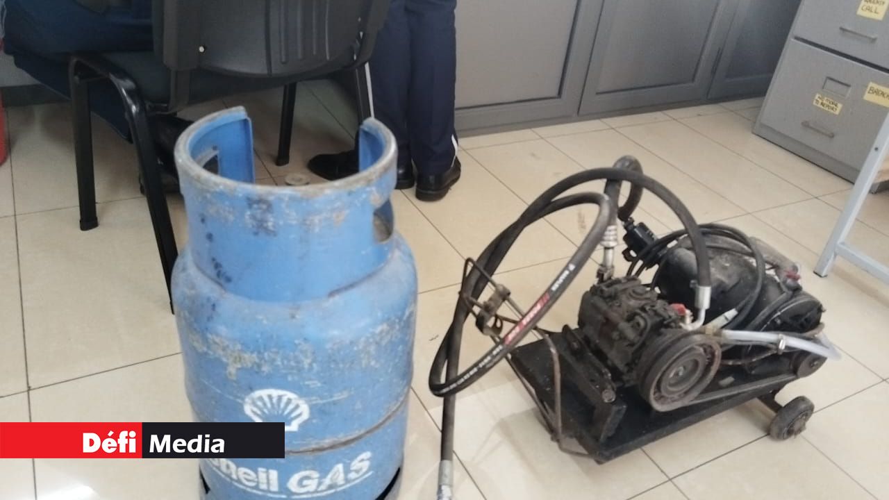 Lors de la perquisition du garage dans la matinée de jeudi une bonbonne de gaz ménager pesant 12,5 kg a été trouvée. Elle était connectée à un compresseur et reliée grâce à un raccord pour transférer du gaz liquéfié vers un taxi. Le garagiste et le chauffeur de taxi, un habitant de Pailles, ont été arrêtés. Ils répondront de : « conspiracy to commit an unlawful act: to wit decanting of Liquefied Petroleum Gas ».