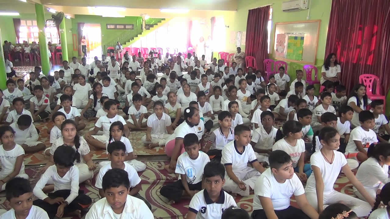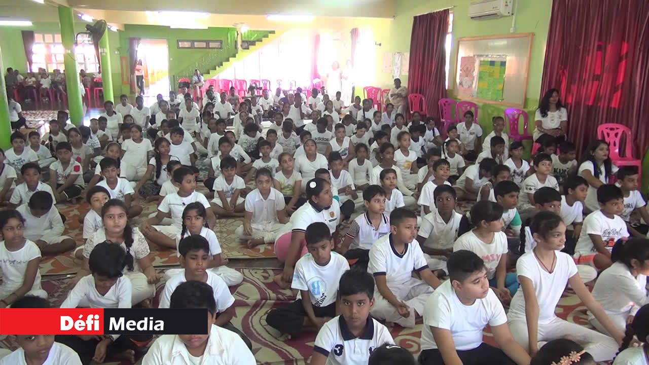 Ainsi, environ 525 élèves ont participé à cette célébration dont quelques étudiants des collèges Friendship de Goodlands, Manrakhan de Montagne-Longue, DAV de Plaine-des-Papayes, Le Nid Pre-Primary and Primary School et le SSR Disability Centre. Plusieurs poses du yoga ont été démontrées par Nirsimooloo, l’instructeur de yoga et les élèves des écoles Le Nid. L’enseignant a fait comprendre dans son discours que le yoga ne vise pas seulement les gens d’une religion spécifique. Il relève d’une philosophie universelle qui peut être pratiquée par tout le monde: les adultes, les vieilles personnes et les enfants de toutes les cultures.
