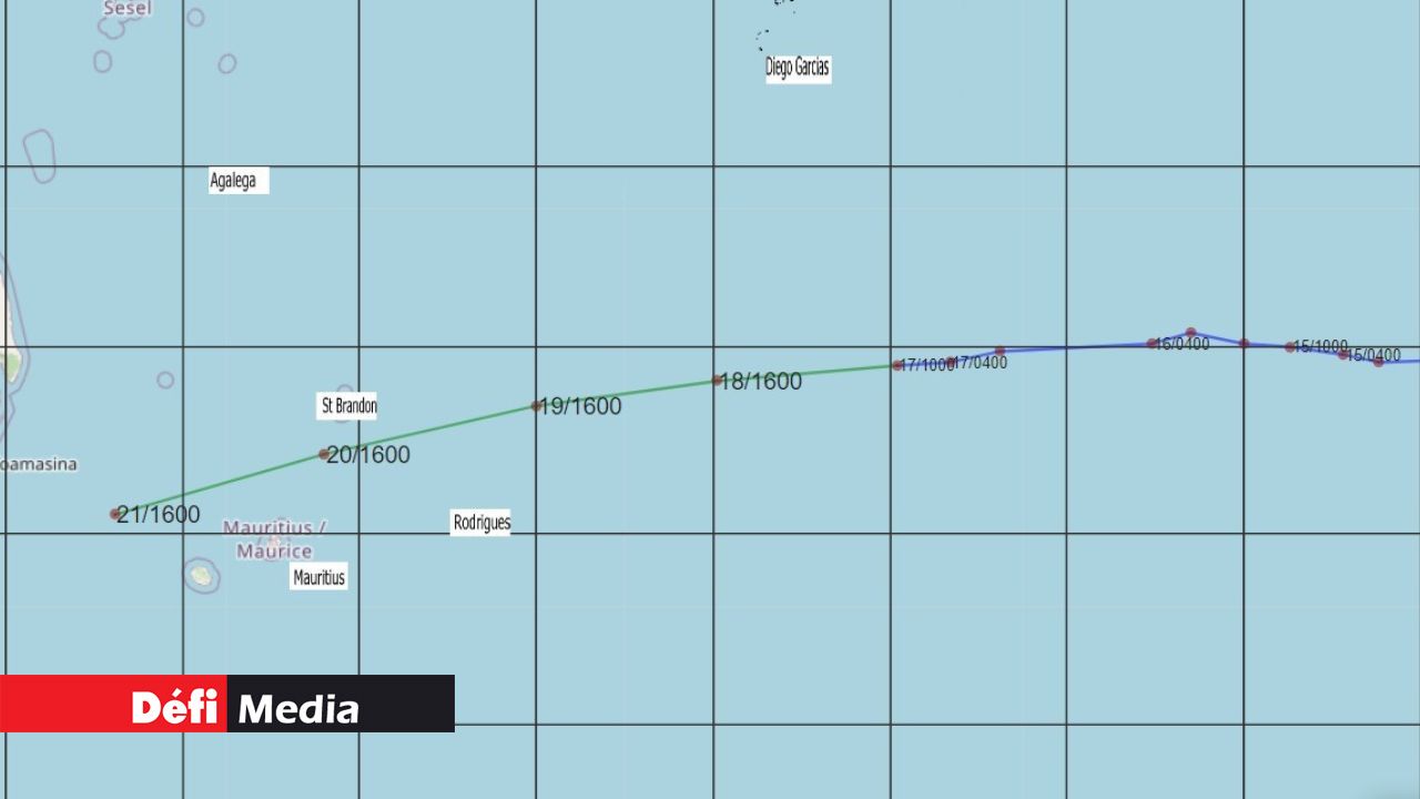 « À 16 h, l'intense cyclone tropical était centré à environ 1 220 km à l'est-nord-est de Rodrigues, soit en latitude 15.7 degrés sud et longitude 74.0 degrés est. Il se déplace dans une direction générale de l’ouest à environ 25 km/h », indique la station météorologique de Vacoas.