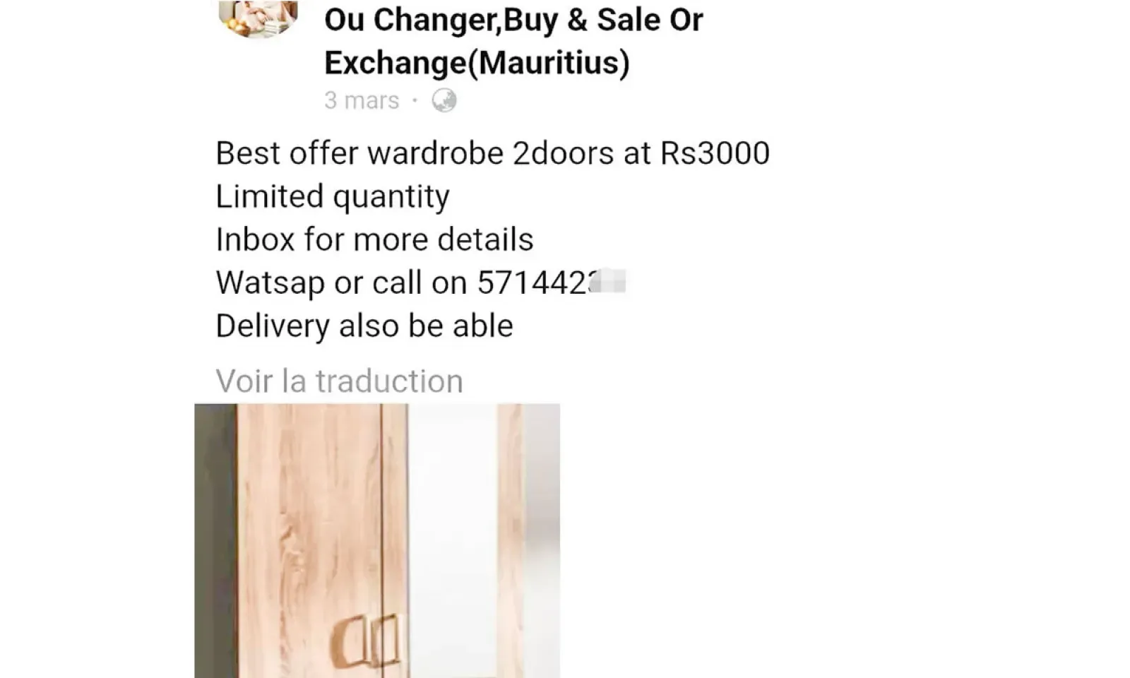 Le vendredi 7 mars, le fonctionnaire est tombé sur une annonce proposant des meubles sur Facebook Marketplace. Son choix se porte sur une armoire à Rs 3 000.