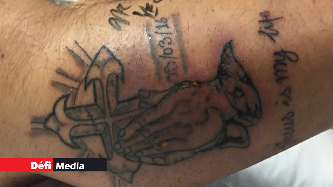 Une infection bactériologique peut arriver si on ne respecte pas ces avertissements. Et justement, en sortant de l'eau, une infection s'est développée autour de son tatouage. Il a été admis à l'hôpital trois jours après, souffrant de fortes douleurs dans la jambe gauche et le pied, de fièvre et de frissons.