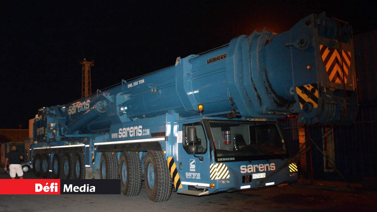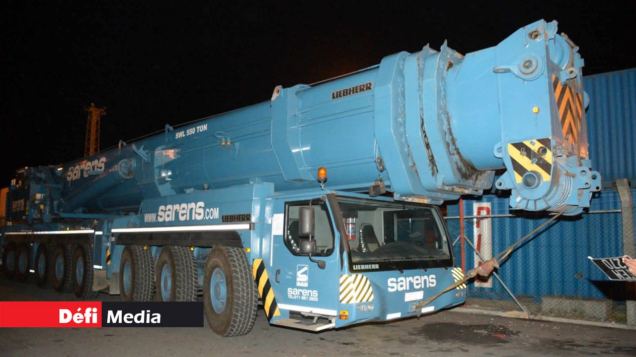 Cet engin colossal à flèche télescopique de 84 m de long a été importé d’Afrique du Sud pour la réalisation du premier parc éolien à Maurice. L’utilisation de cette grue ayant une capacité de charge maximum avec portée de 500 tonnes sera cruciale pour la mise sur pied des structures éoliennes. Toutes les dispositions avaient été prises par les autorités pour que cette grue mobile fasse le trajet Port-Louis-Plaine-des-Roches sans encombre.