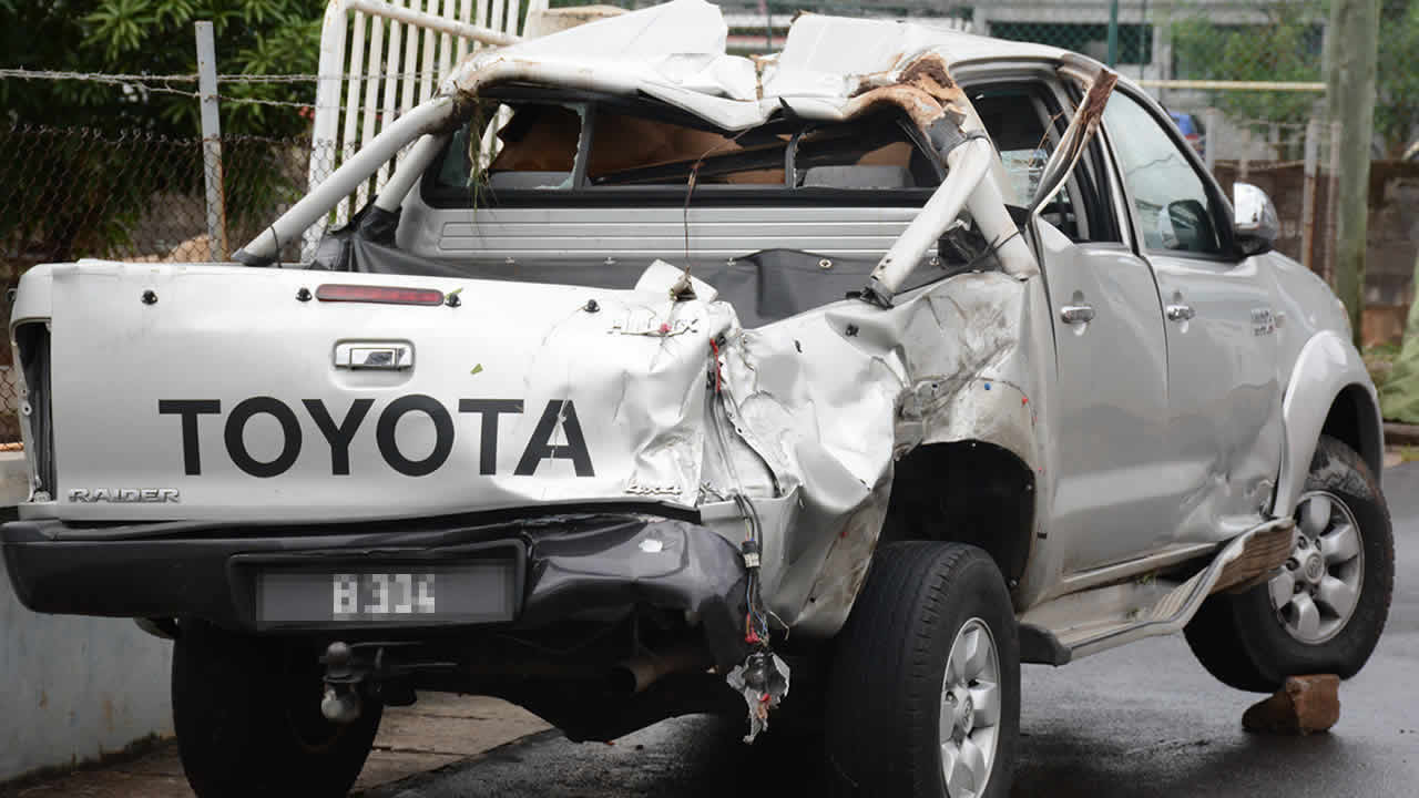 Les policiers lui réclament des explications. Aux dires du chauffeur, manager dans une compagnie, il se dirigeait vers Floréal lorsqu’il a commencé à pleuvoir des cordes. « J’ai dérapé et mon véhicule a fait plusieurs tonneaux ».