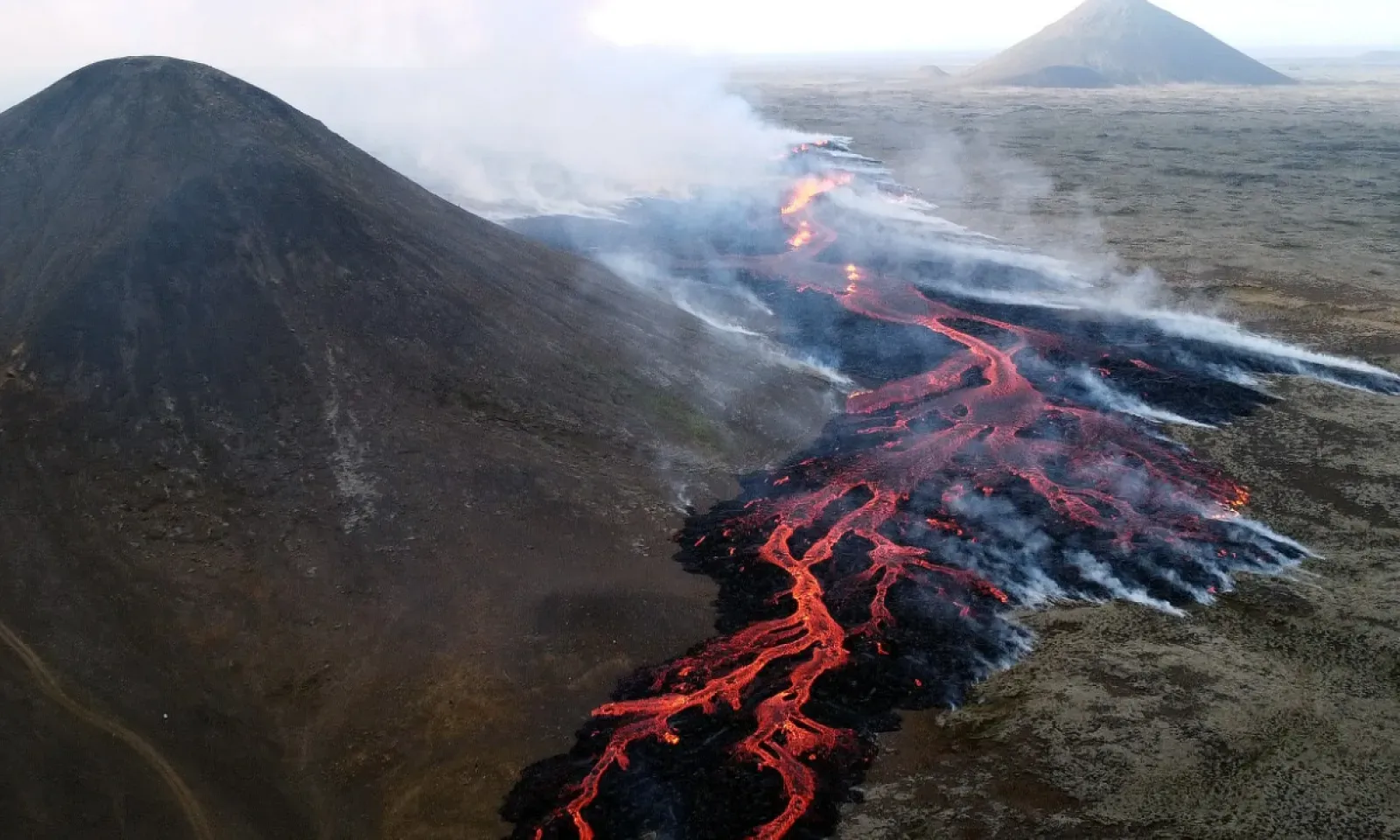Si l'éruption reste "de faible intensité" selon les volcanologues, les premières estimations indiquent que son débit est nettement plus puissant que les deux précédentes éruptions en 2021 et 2022 sur la péninsule de Reykjanes, un secteur où la lave a fait son retour depuis deux ans après huit siècles en sommeil.