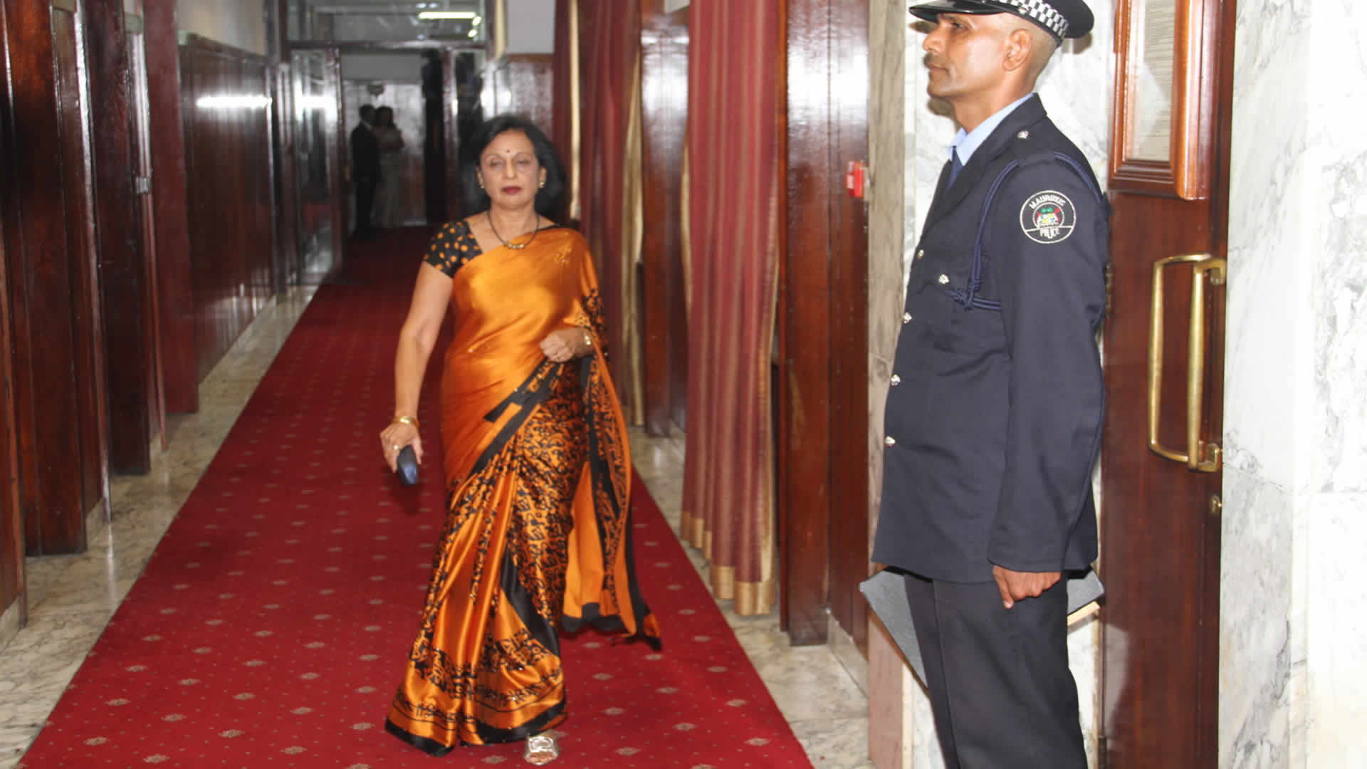 [blockquote]Devant la tournure des événements, Maya Hanoomanjee s’est retirée de l’hémicycle durant une demi-heure ; le temps que l’ordre ne soit rétabli.[/blockquote]