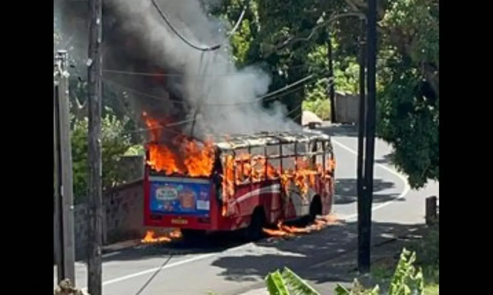 « L'incendie a débuté par une légère fumée pour ensuite se propager en flammes. Heureusement, les passagers à bord du véhicule avaient déjà évacué avant que l'incendie ne se déclare. Aucune victime n'est à déplorer. Les pompiers sont intervenus quinze minutes après pour maîtriser les flammes », explique Chavee Hookoom. Selon les déclarations de cette internaute, la région est privée d'électricité depuis ce matin. Des techniciens du Central Electricity Board sont déjà sur place pour rétablir la connexion électrique, précise-t-elle.