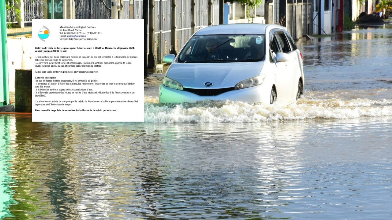 Image La station météorologique de Vacoas a émis ce matin un avis de veille de fortes pluies valable jusqu'à 22 h ce dimanche. Plus de détails ci-dessous : Publicité View the discussion thread.